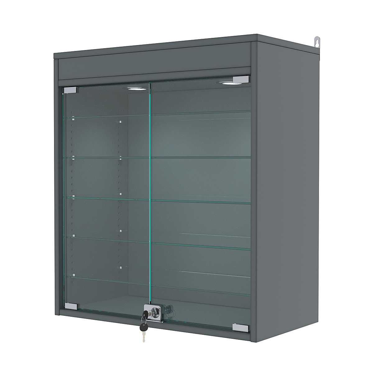 Витрина настенная с регулировочными полками №1-7АГ-РЕГ с подсветкой, Темно-Серый