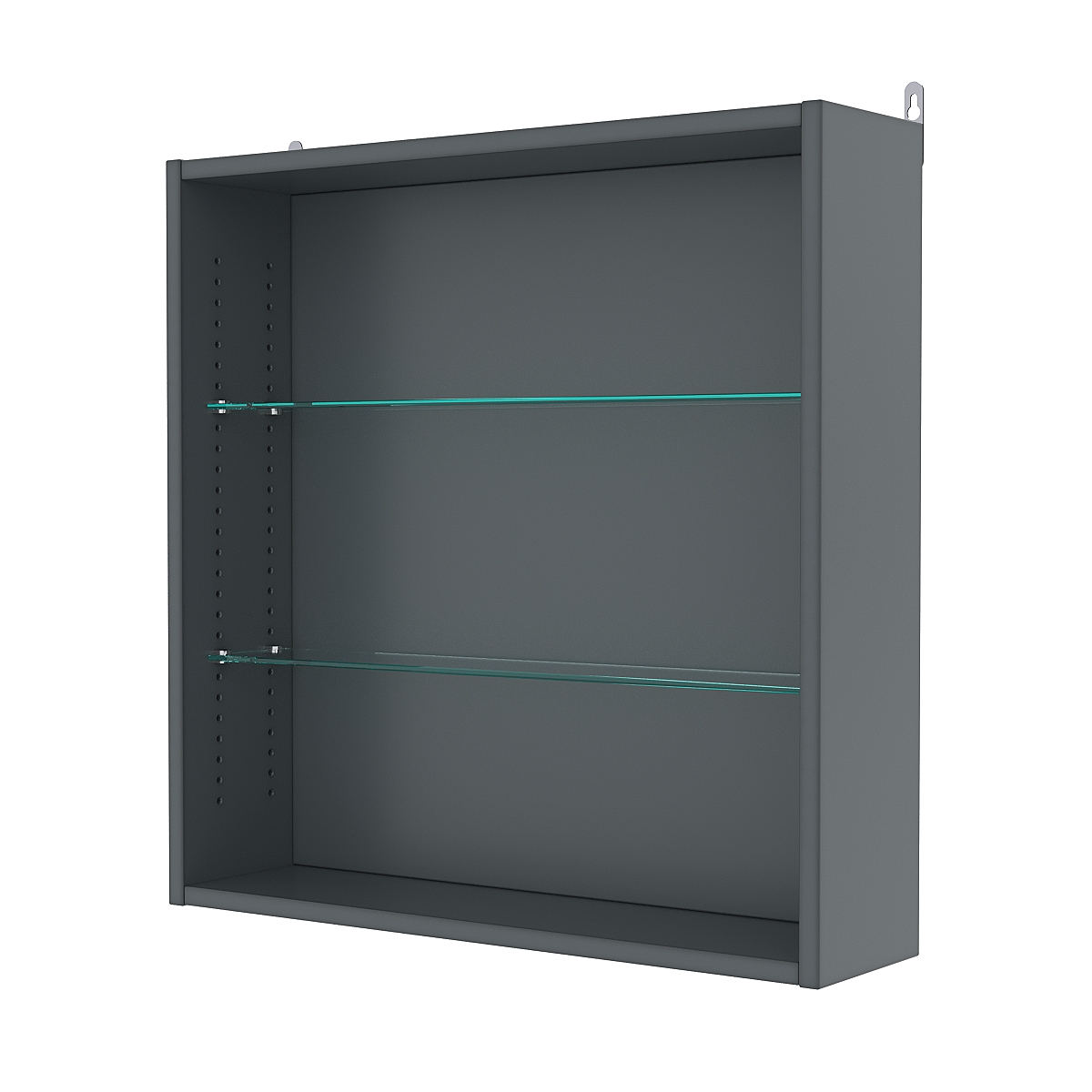 Кол-во полок из стекла 5 мм: 2 шт., расстояние между которыми 185 мм, глубина 97 мм;