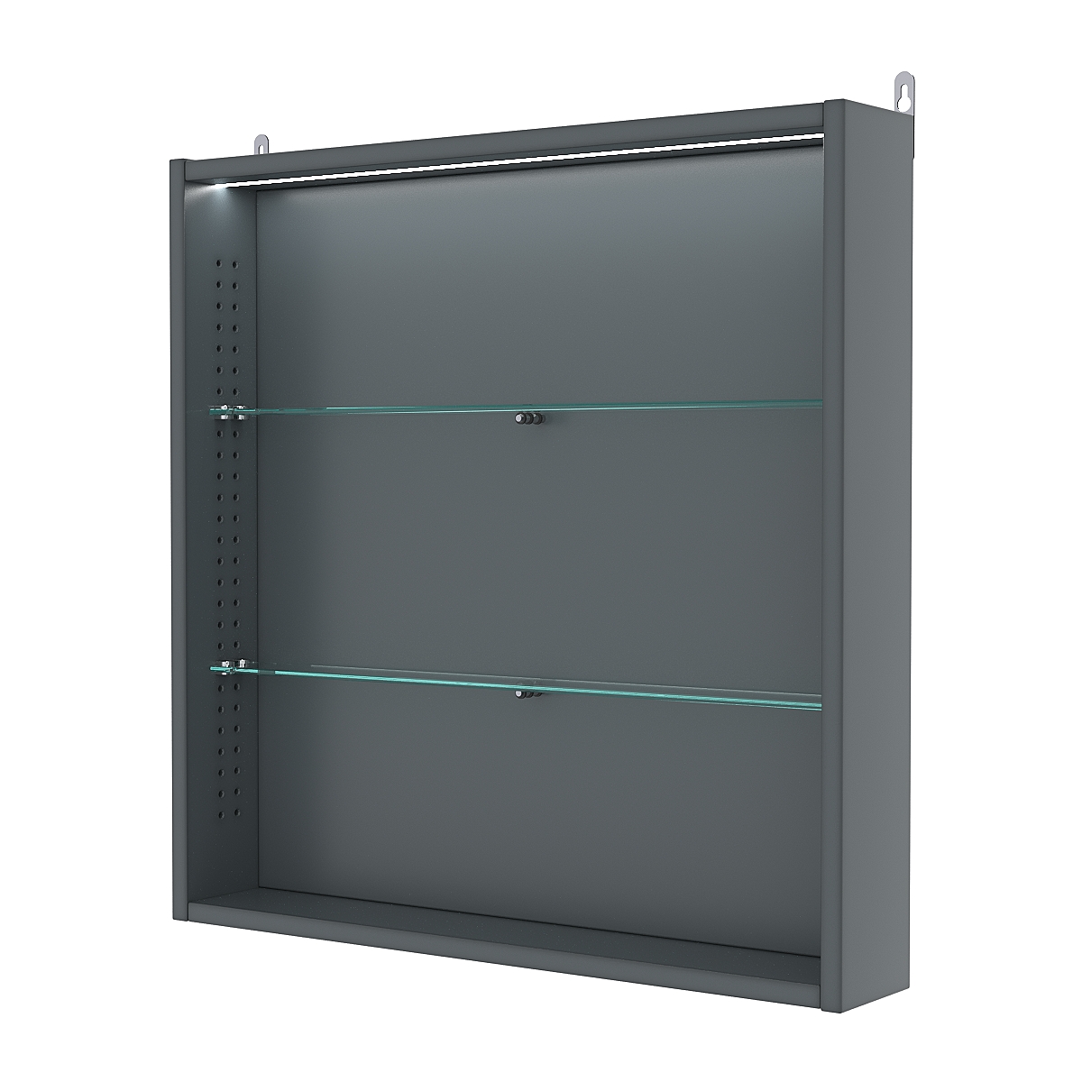 Кол-во полок из стекла 5 мм: 2 шт., расстояние между которыми 185 мм, глубина 47 мм;