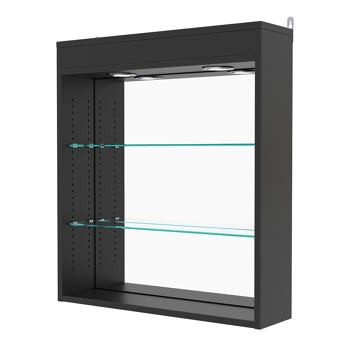 Кол-во полок из стекла 5 мм: 2 шт., расстояние между которыми 185 мм, глубина 97 мм;