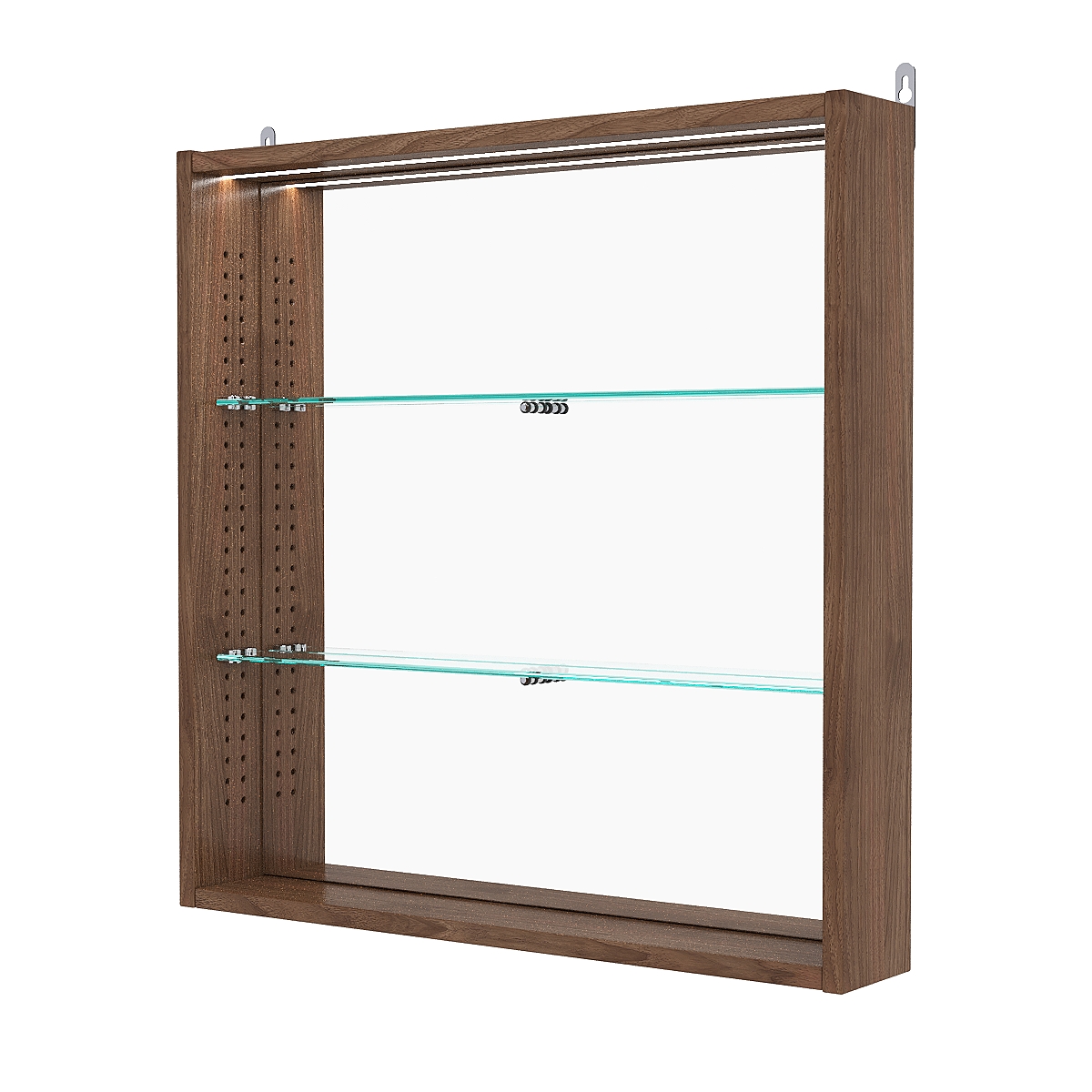 Кол-во полок из стекла 5 мм: 2 шт., расстояние между которыми 185 мм, глубина 47 мм;