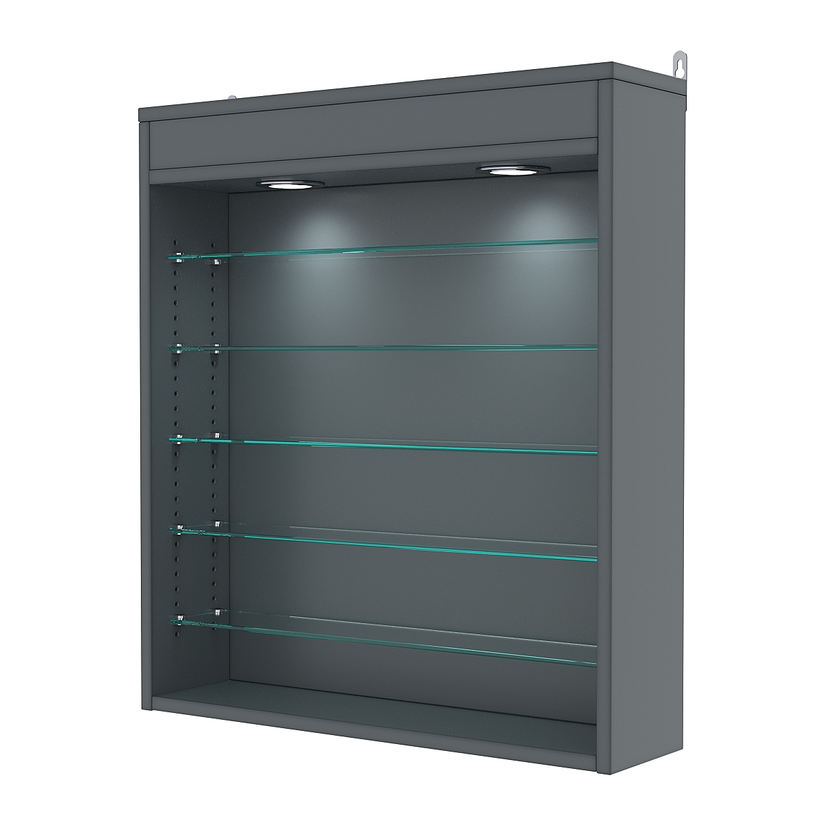 Кол-во полок из стекла 5 мм: 5 шт, расстояние между которыми 89 мм, глубина 97 мм;