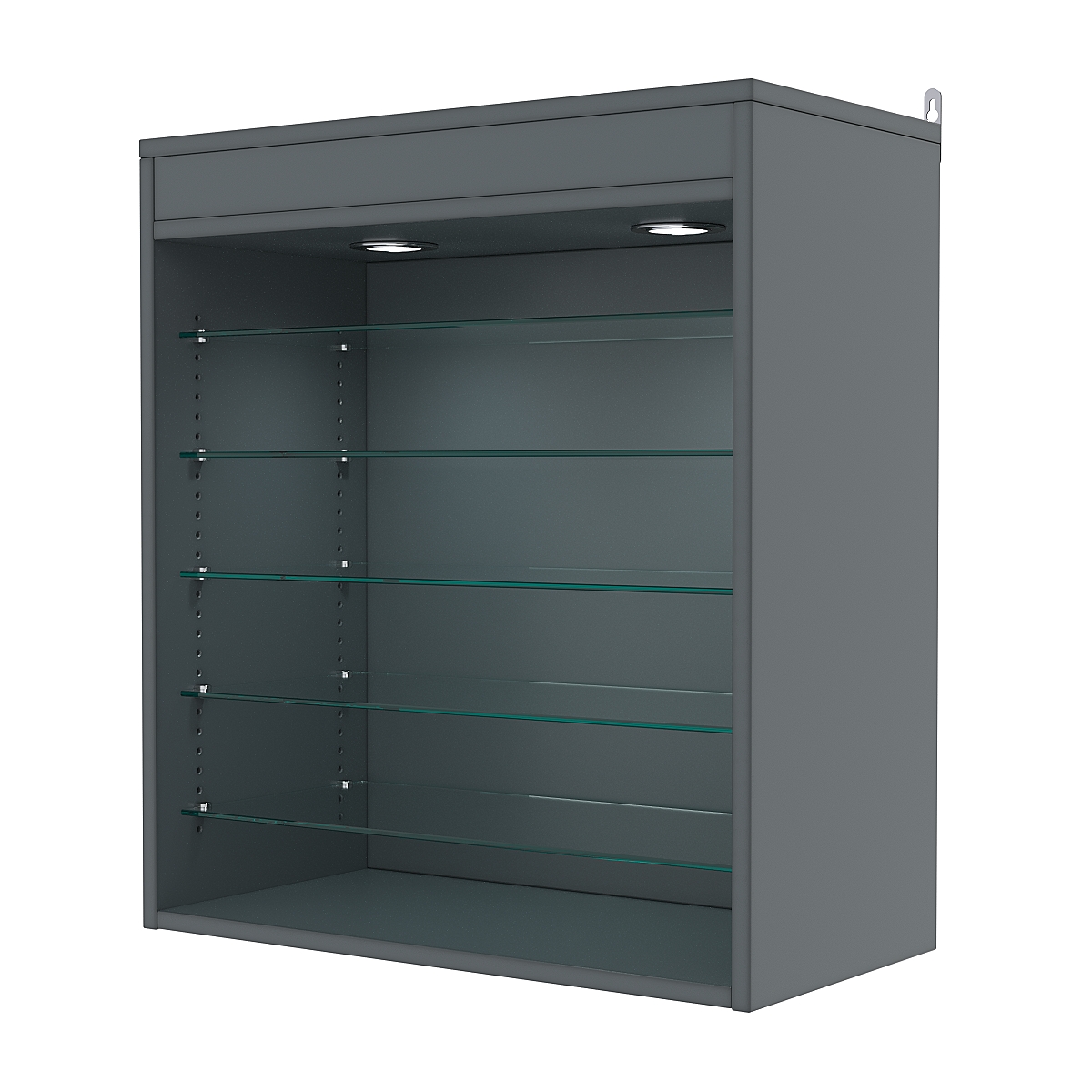 Кол-во полок из стекла 5 мм: 5 шт, расстояние между которыми 89 мм, глубина 254 мм;