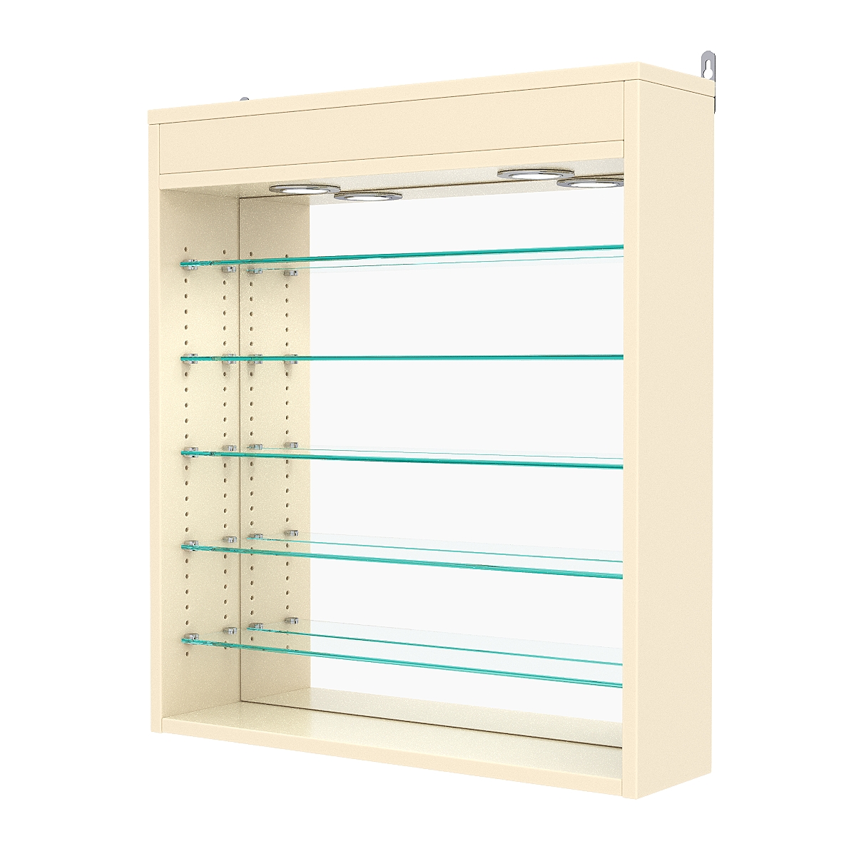 Кол-во полок из стекла 5 мм: 5 шт, расстояние между которыми 89 мм, глибина 97 мм;