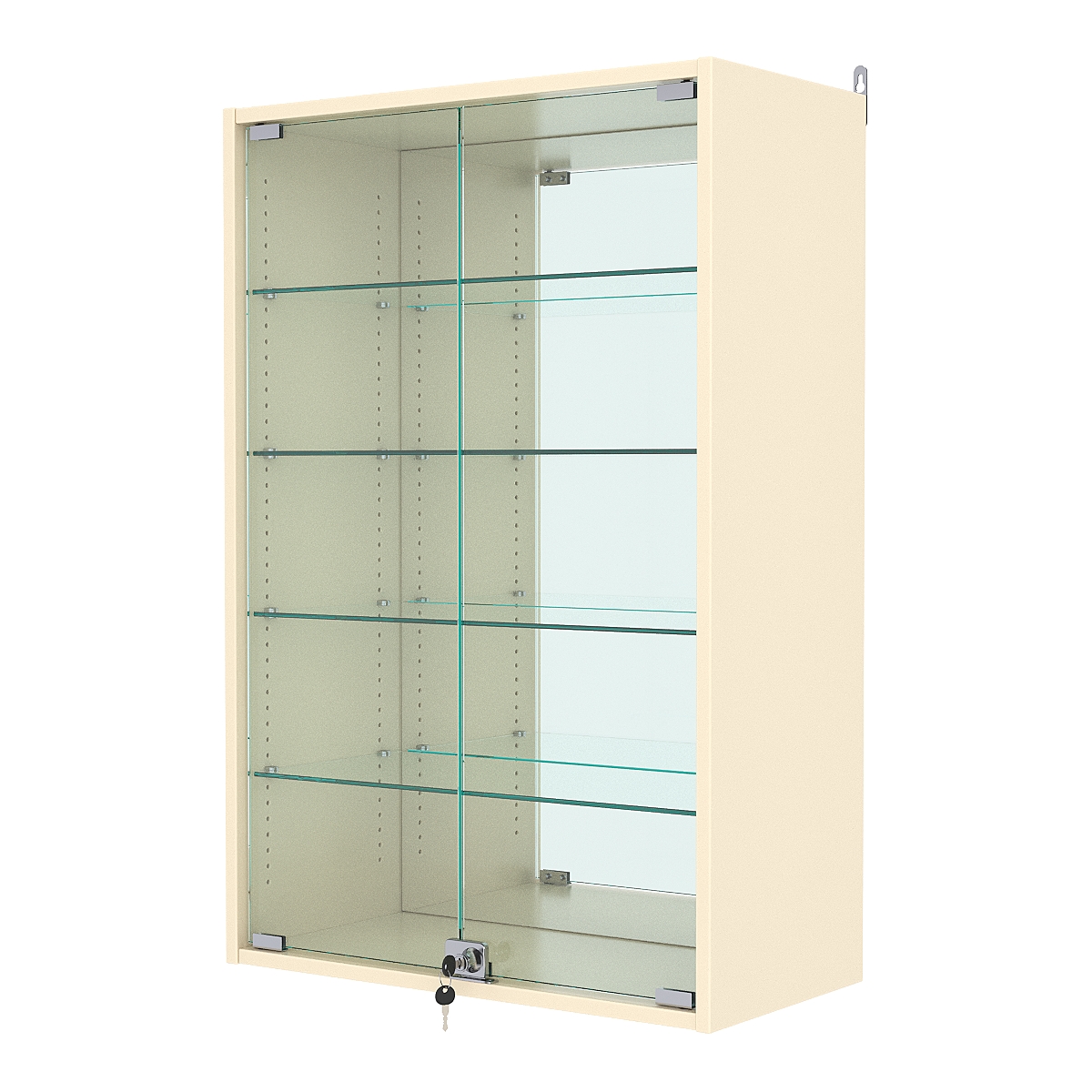 Витрина настенная с регулировочными полками №2-2АГ-РЕГ с зеркалом, Крем Вайс