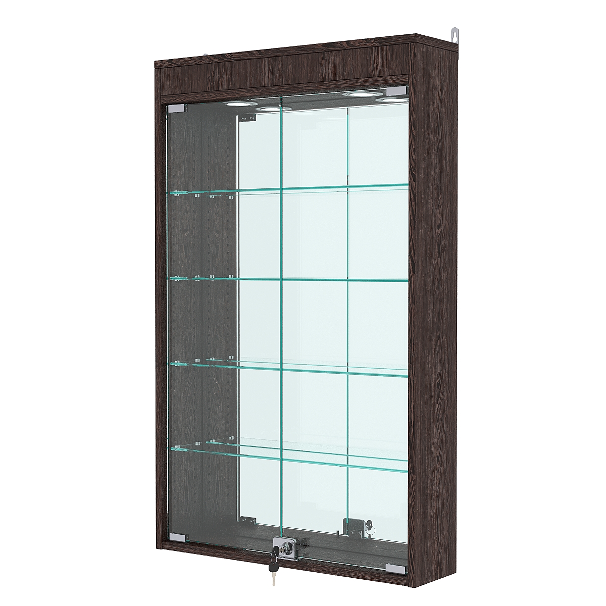Витрины настенные представляют собой отличный вариант качественных, а главное лёгких конструкций. Собираются в течение 30 минут, монтируются на любую вертикальную поверхность. Специальных навыков при сборке не требуется. Отлично подходят для демонстрации мелких товаров, таких как: бижутерия, брелоки, модели машинок, статуэтки и прочая сувенирная продукция. Есть функция регулировки полок.