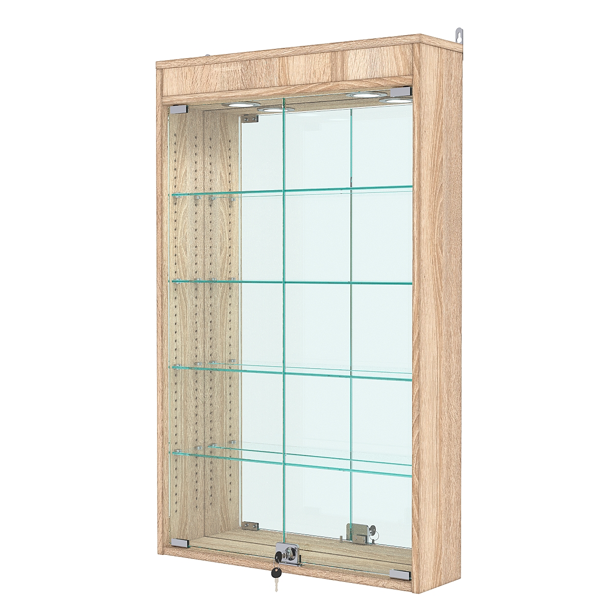 Витрины настенные представляют собой отличный вариант качественных, а главное лёгких конструкций. Собираются в течение 30 минут, монтируются на любую вертикальную поверхность. Специальных навыков при сборке не требуется. Отлично подходят для демонстрации мелких товаров, таких как: бижутерия, брелоки, модели машинок, статуэтки и прочая сувенирная продукция. Есть функция регулировки полок.