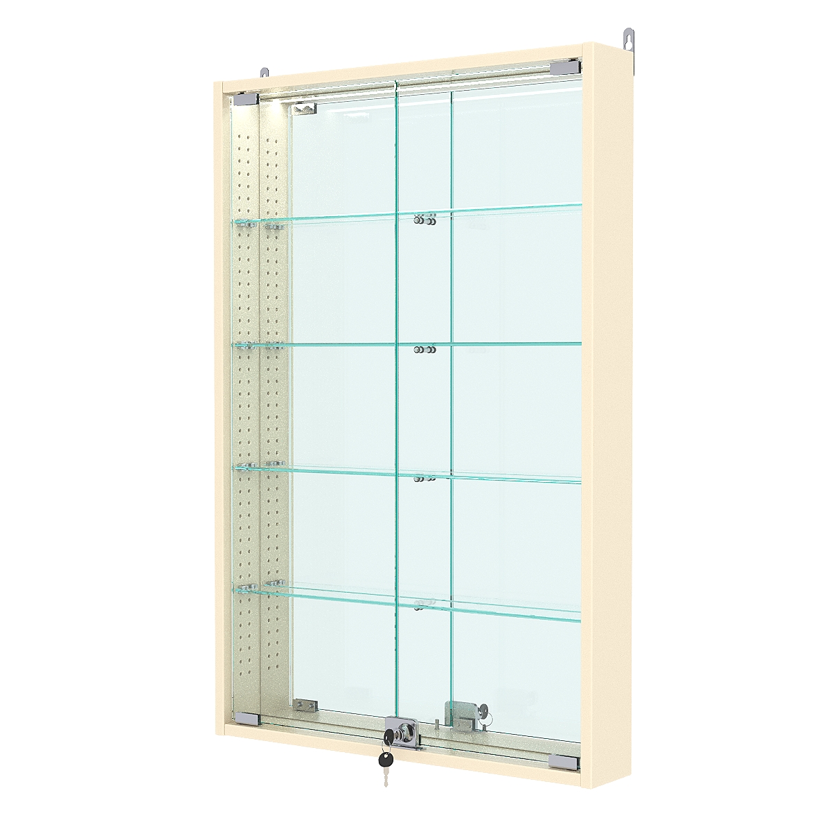 Витрина настенная с регулировочными полками №2-4АУ-РЕГ с зеркалом и с подсветкой, Крем Вайс