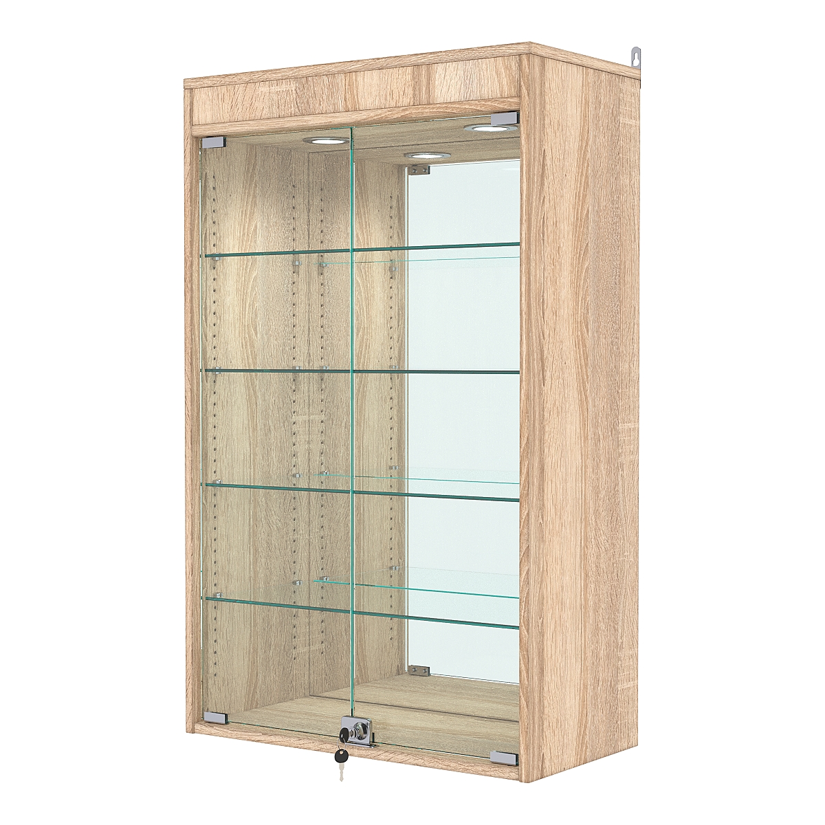 Витрина настенная с регулировочными полками №2-4АГ-РЕГ с зеркалом и с подсветкой, Дуб Сонома