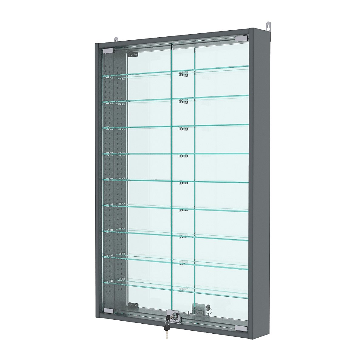 Витрина настенная с регулировочными полками №2-6АУ-РЕГ с зеркалом, Темно-Серый