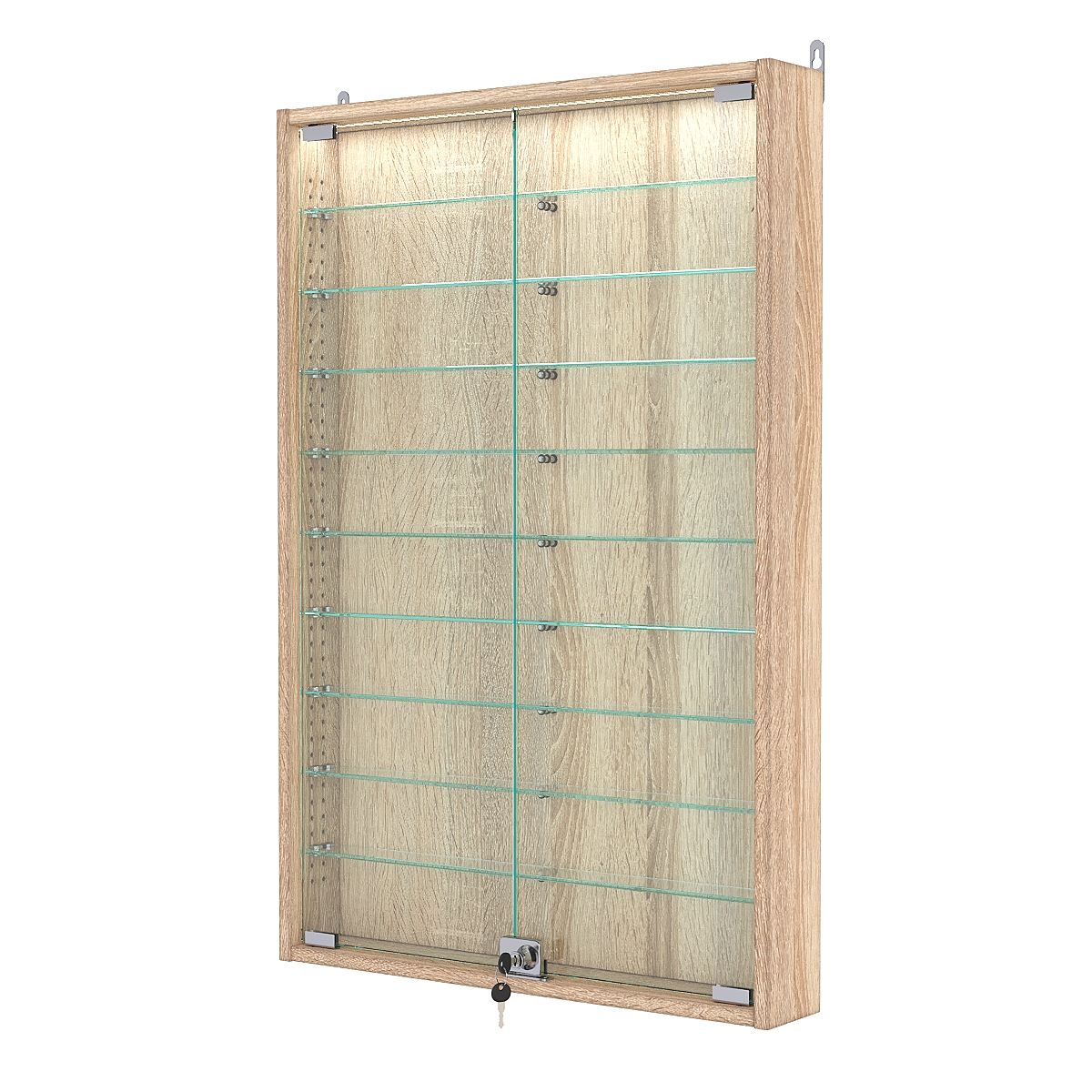Витрина настенная с регулировочными полками №2-7АУ-РЕГ с подсветкой, Дуб Сонома