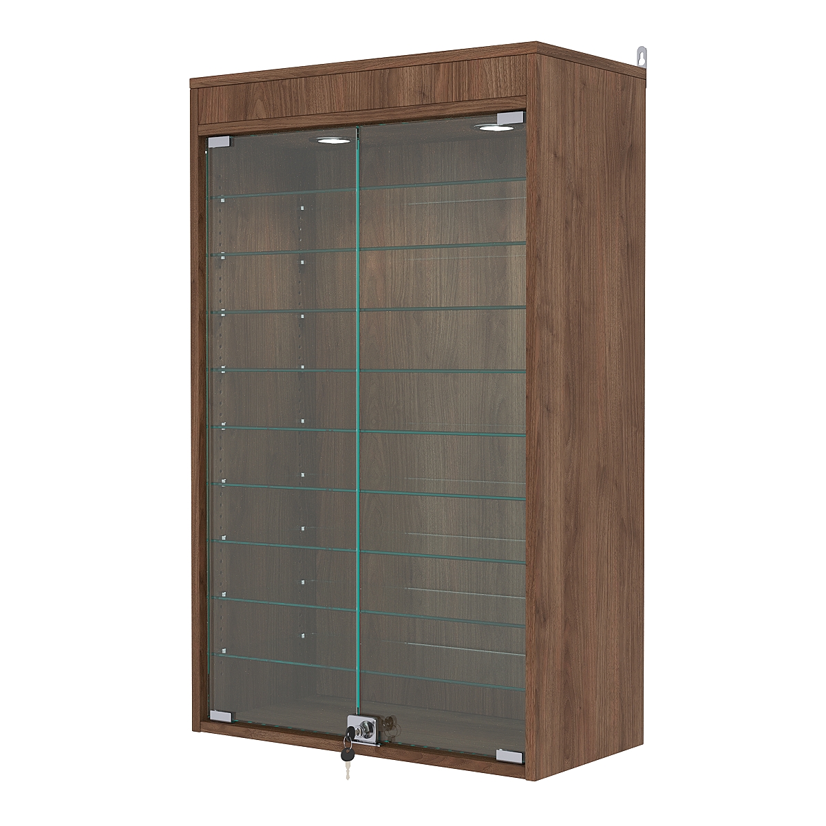 Витрина настенная с регулировочными полками №2-7АГ-РЕГ с подсветкой, Орех