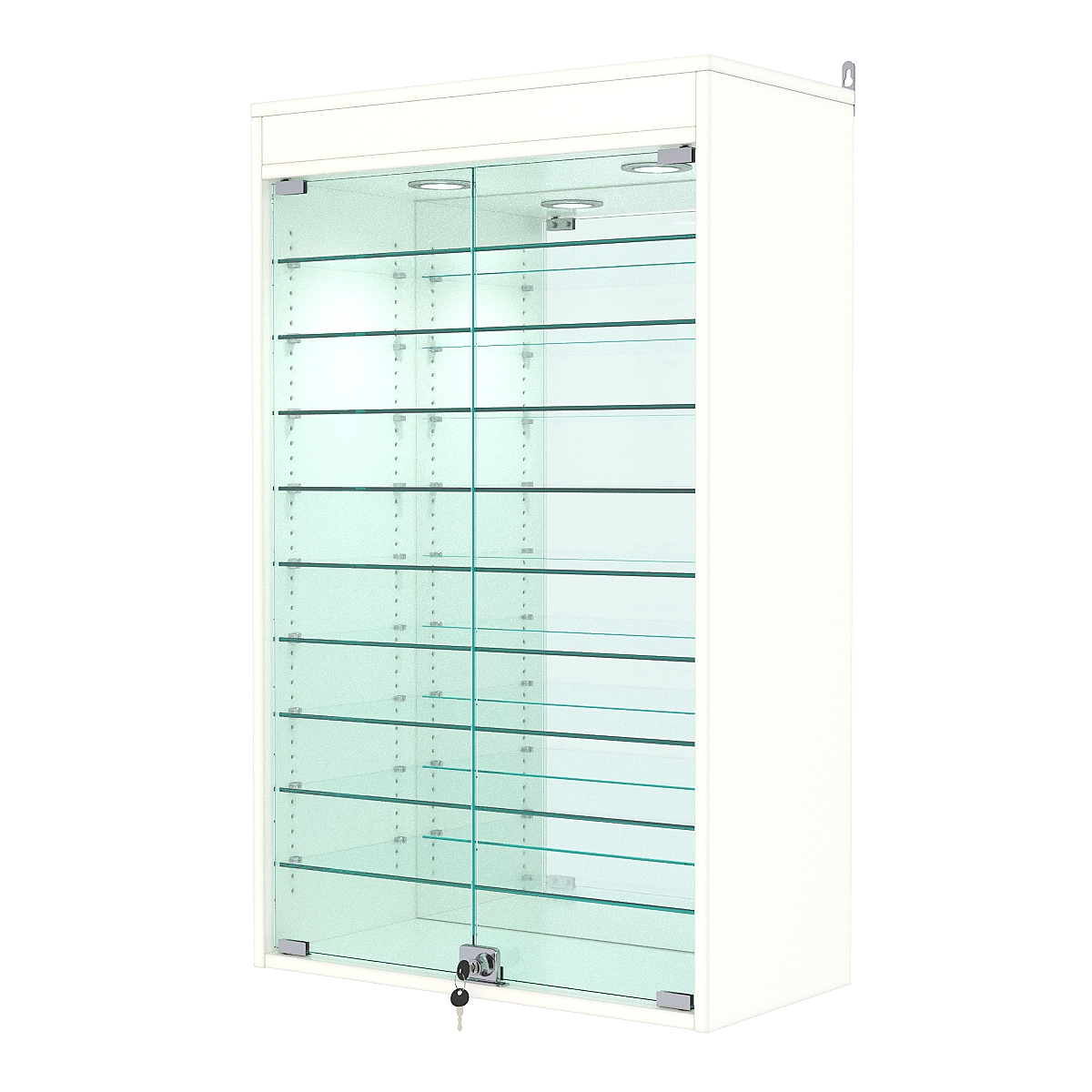Витрина настенная с регулировочными полками №2-8АГ-РЕГ с зеркалом и с подсветкой, Белый
