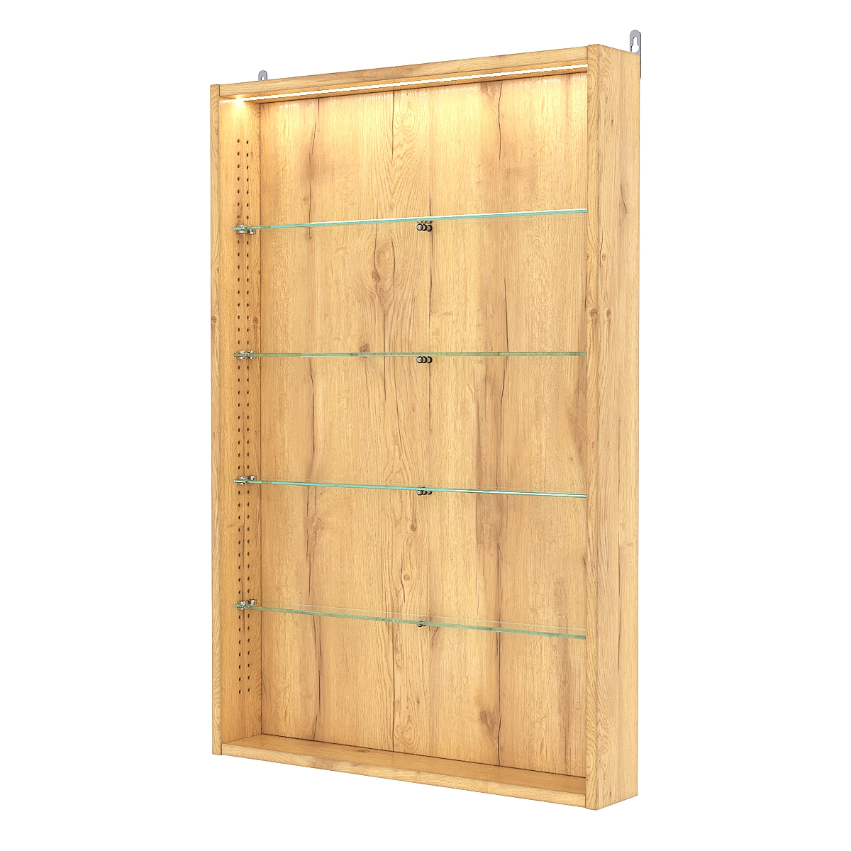 Витрина настенная с регулировочными полками №2-3ГУ-РЕГ с подсветкой, Дуб Золотистый