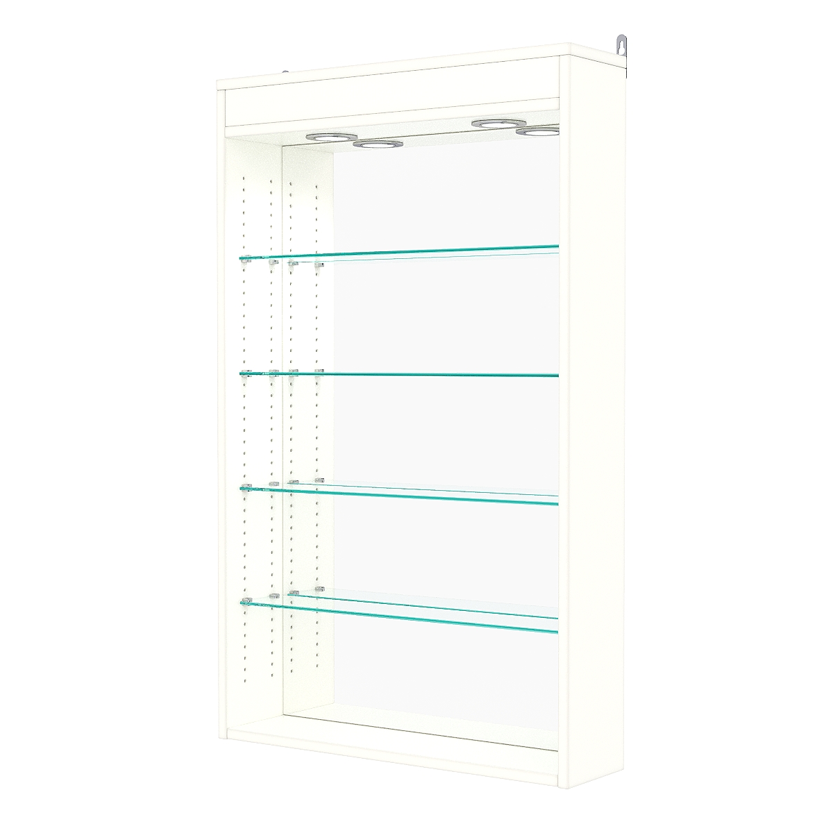 Кол-во полок из стекла 6мм: 4шт, расстояние между которыми 168мм, глубина полок 97мм;