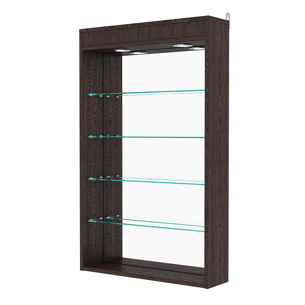Кол-во полок из стекла 6мм: 4шт, расстояние между которыми 168мм, глубина полок 97мм;