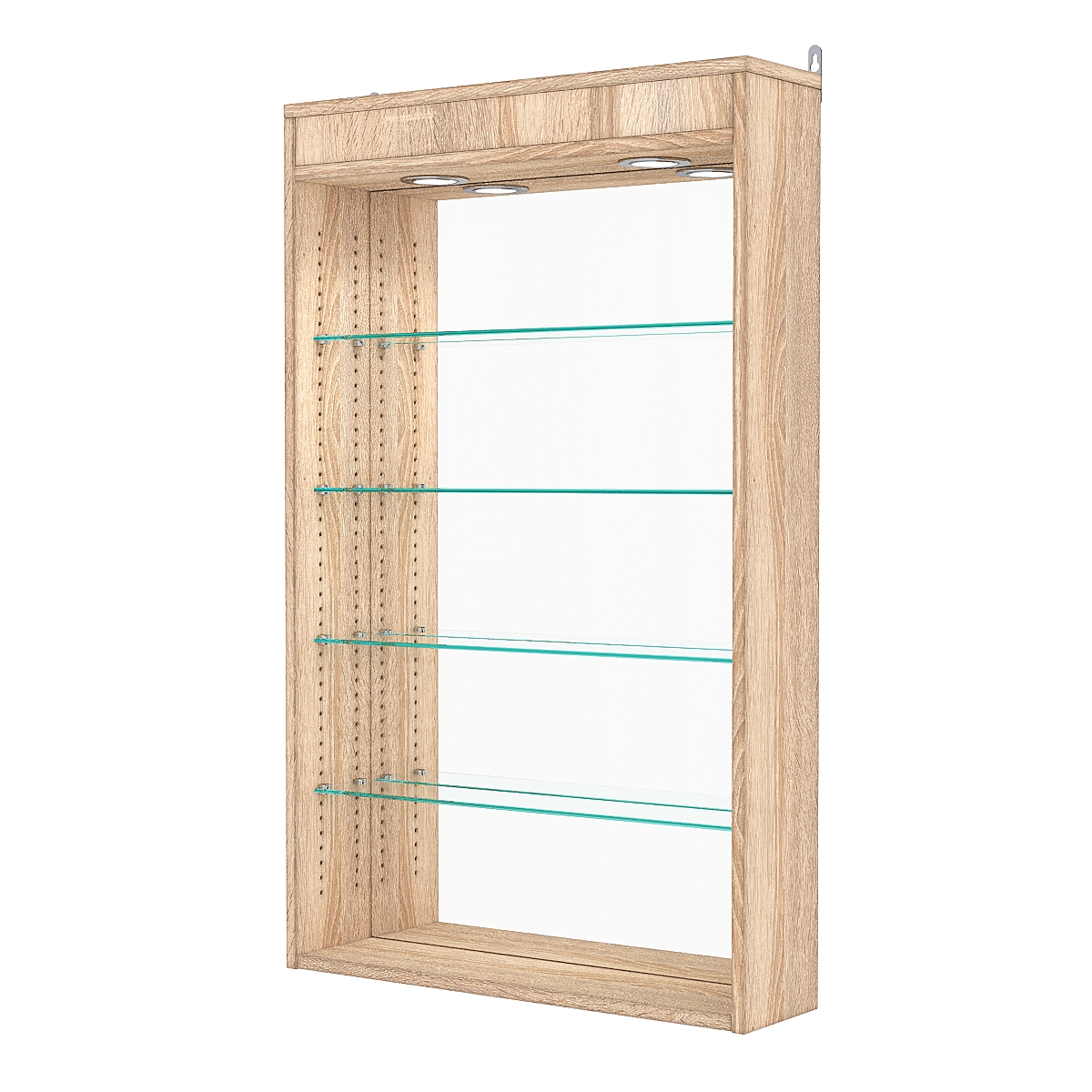 Кол-во полок из стекла 6мм: 4шт, расстояние между которыми 168мм, глубина полок 97мм;