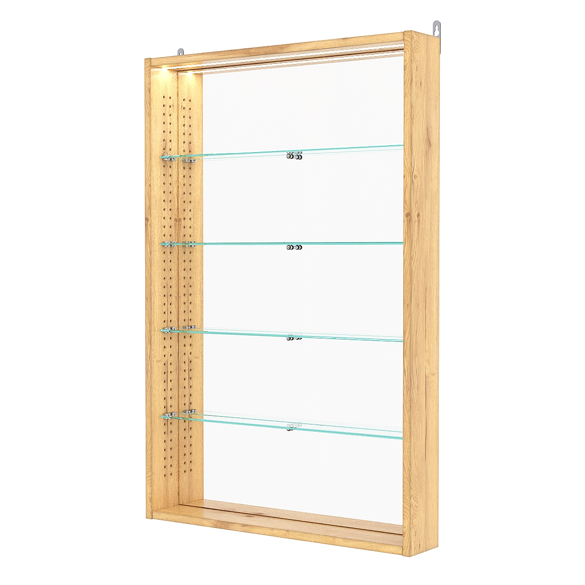 Витрина настенная с регулировочными полками №2-4ГУ-РЕГ с зеркалом и с подсветкой, Дуб Золотистый