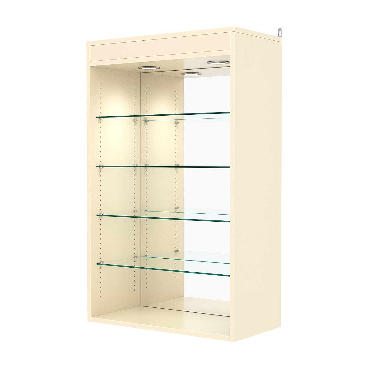 Витрина настенная с регулировочными полками №2-4ГГ-РЕГ с зеркалом и с подсветкой, Крем Вайс