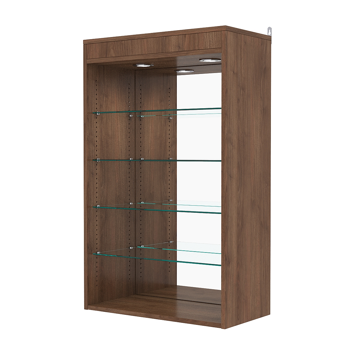 Витрина настенная с регулировочными полками №2-4ГГ-РЕГ с зеркалом и с подсветкой, Орех
