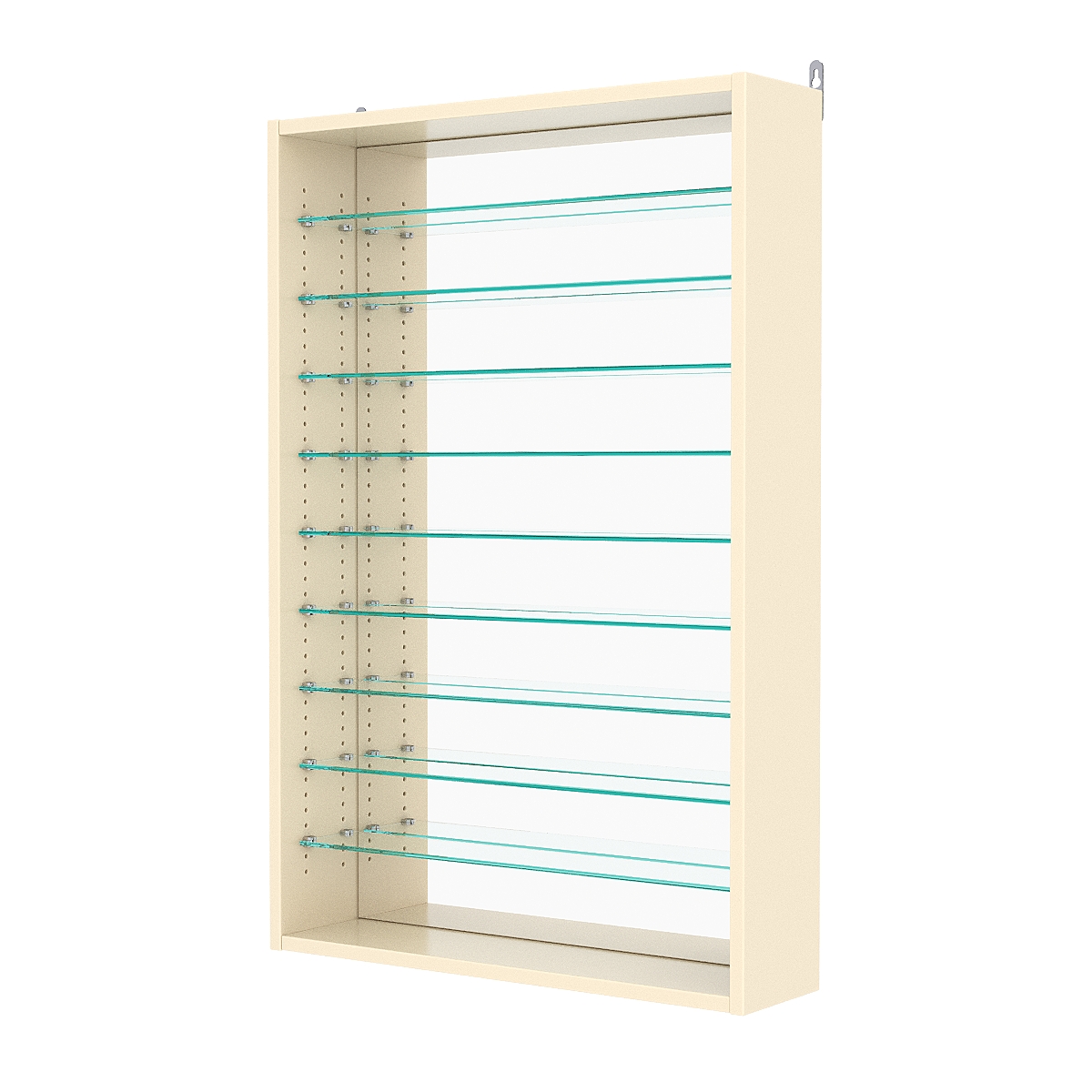Витрины настенные представляют собой отличный вариант качественных, а главное лёгких конструкций. Собираются в течение 30 минут, монтируются на любую вертикальную поверхность. Специальных навыков при сборке не требуется. Отлично подходят для демонстрации мелких товаров, таких как: бижутерия, брелоки, модели машинок, статуэтки и прочая сувенирная продукция. Есть функция регулировки полок.