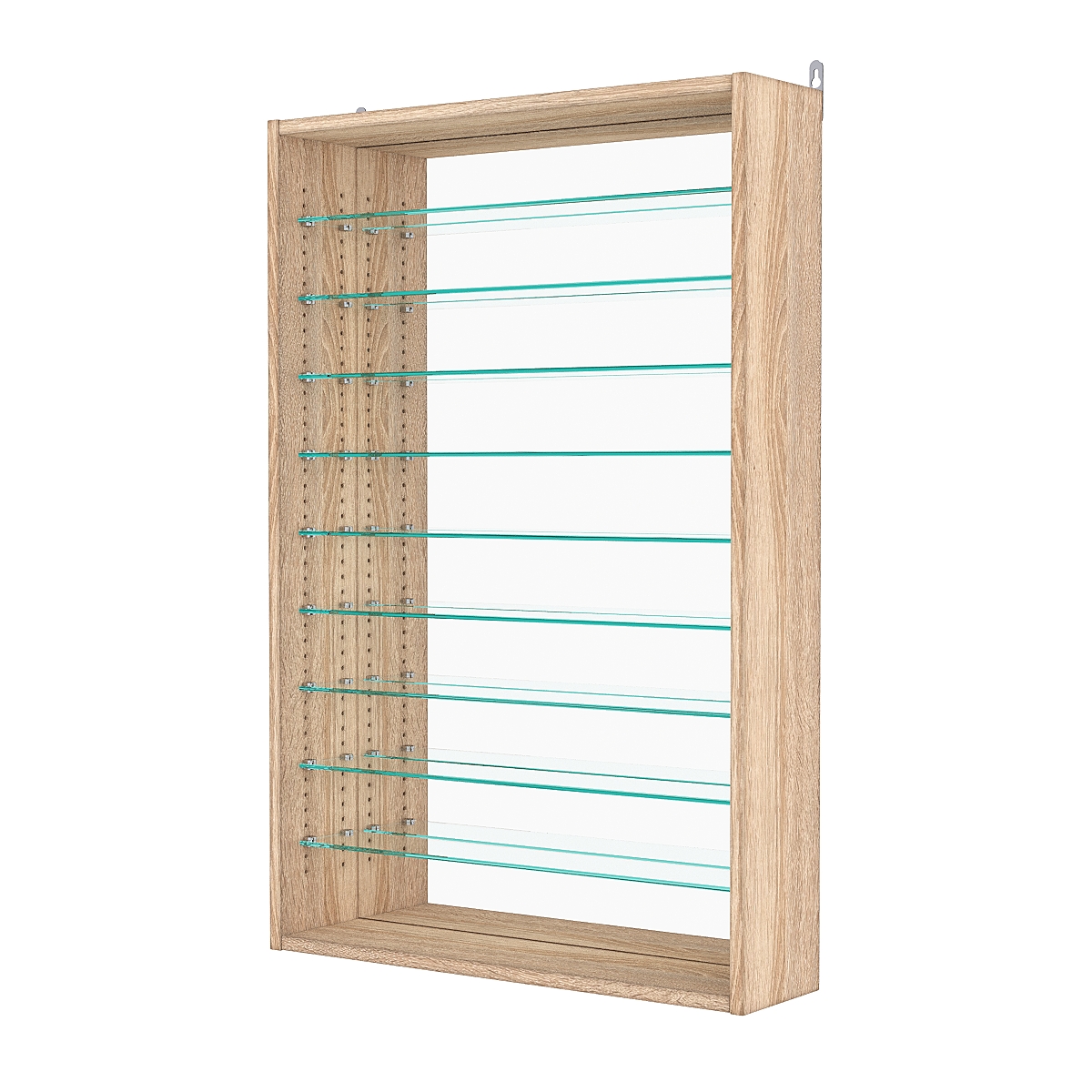 Кол-во полок из стекла 6мм: 9шт, расстояние между которыми 81мм, глубина полок 97мм;