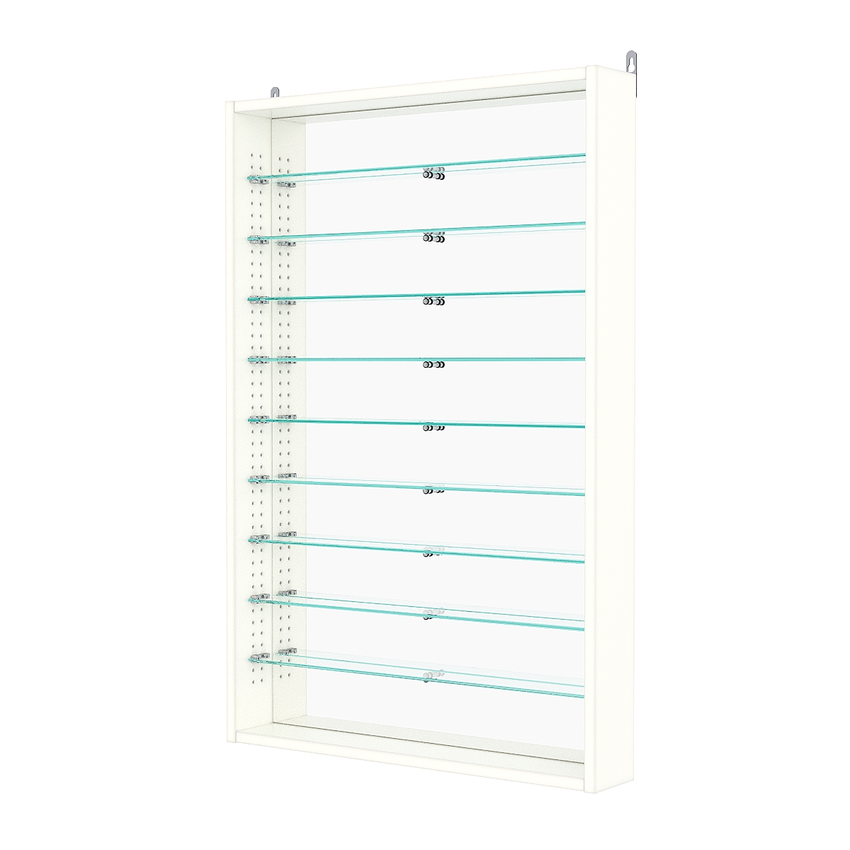 Витрины настенные представляют собой отличный вариант качественных, а главное лёгких конструкций. Собираются в течение 30 минут, монтируются на любую вертикальную поверхность. Специальных навыков при сборке не требуется. Отлично подходят для демонстрации мелких товаров, таких как: бижутерия, брелоки, модели машинок, статуэтки и прочая сувенирная продукция. Есть функция регулировки полок.