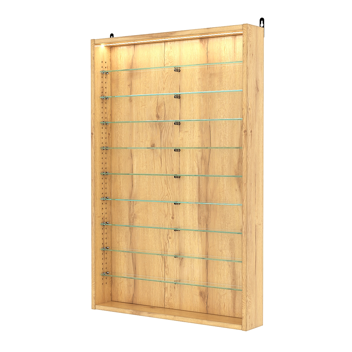Витрина настенная с регулировочными полками №2-7ГУ-РЕГ с подсветкой, Дуб Золотистый