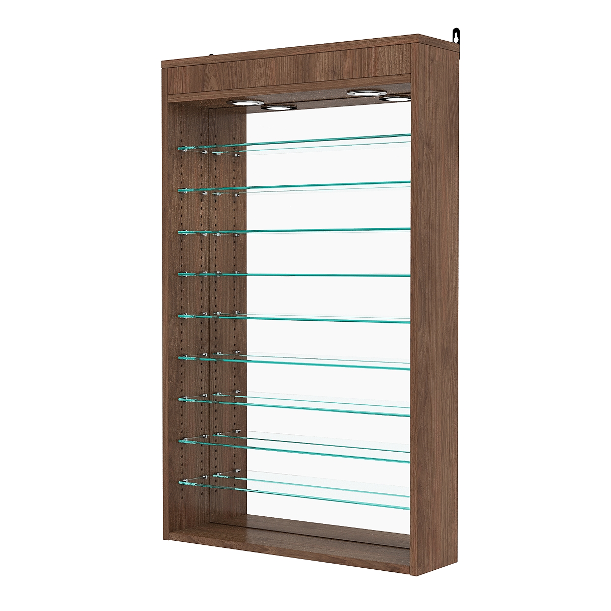 Витрина настенная с регулировочными полками №2-8Г-РЕГ с зеркалом и с подсветкой, Орех