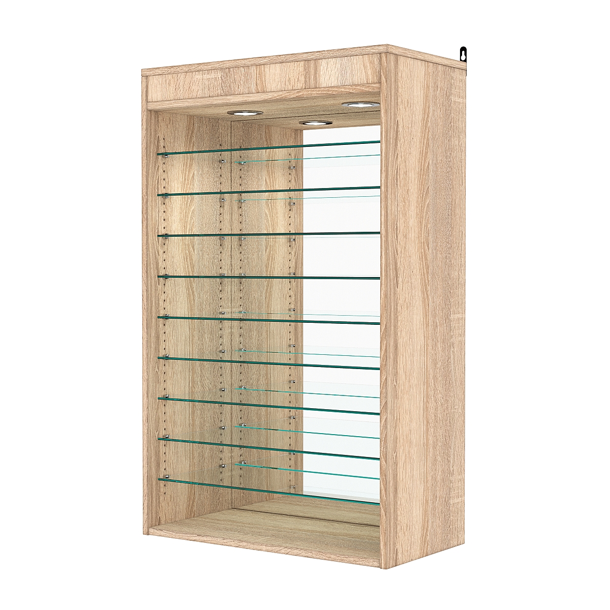Витрины настенные представляют собой отличный вариант качественных, а главное лёгких конструкций. Собираются в течение 30 минут, монтируются на любую вертикальную поверхность. Специальных навыков при сборке не требуется. Отлично подходят для демонстрации мелких товаров, таких как: бижутерия, брелоки, модели машинок, статуэтки и прочая сувенирная продукция. Есть функция регулировки полок.