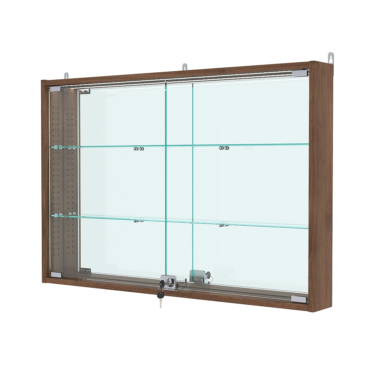 Витрины настенные представляют собой отличный вариант качественных, а главное лёгких конструкций. Собираются в течение 30 минут, монтируются на любую вертикальную поверхность. Специальных навыков при сборке не требуется. Отлично подходят для демонстрации мелких товаров, таких как: бижутерия, брелоки, модели машинок, статуэтки и прочая сувенирная продукция. Есть функция регулировки полок.