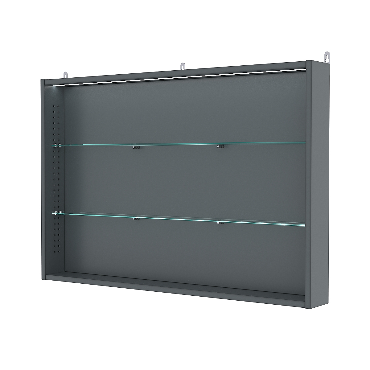Витрины настенные представляют собой отличный вариант качественных, а главное лёгких конструкций. Собираются в течение 30 минут, монтируются на любую вертикальную поверхность. Специальных навыков при сборке не требуется. Отлично подходят для демонстрации мелких товаров, таких как: бижутерия, брелоки, модели машинок, статуэтки и прочая сувенирная продукция. Есть функция регулировки полок.