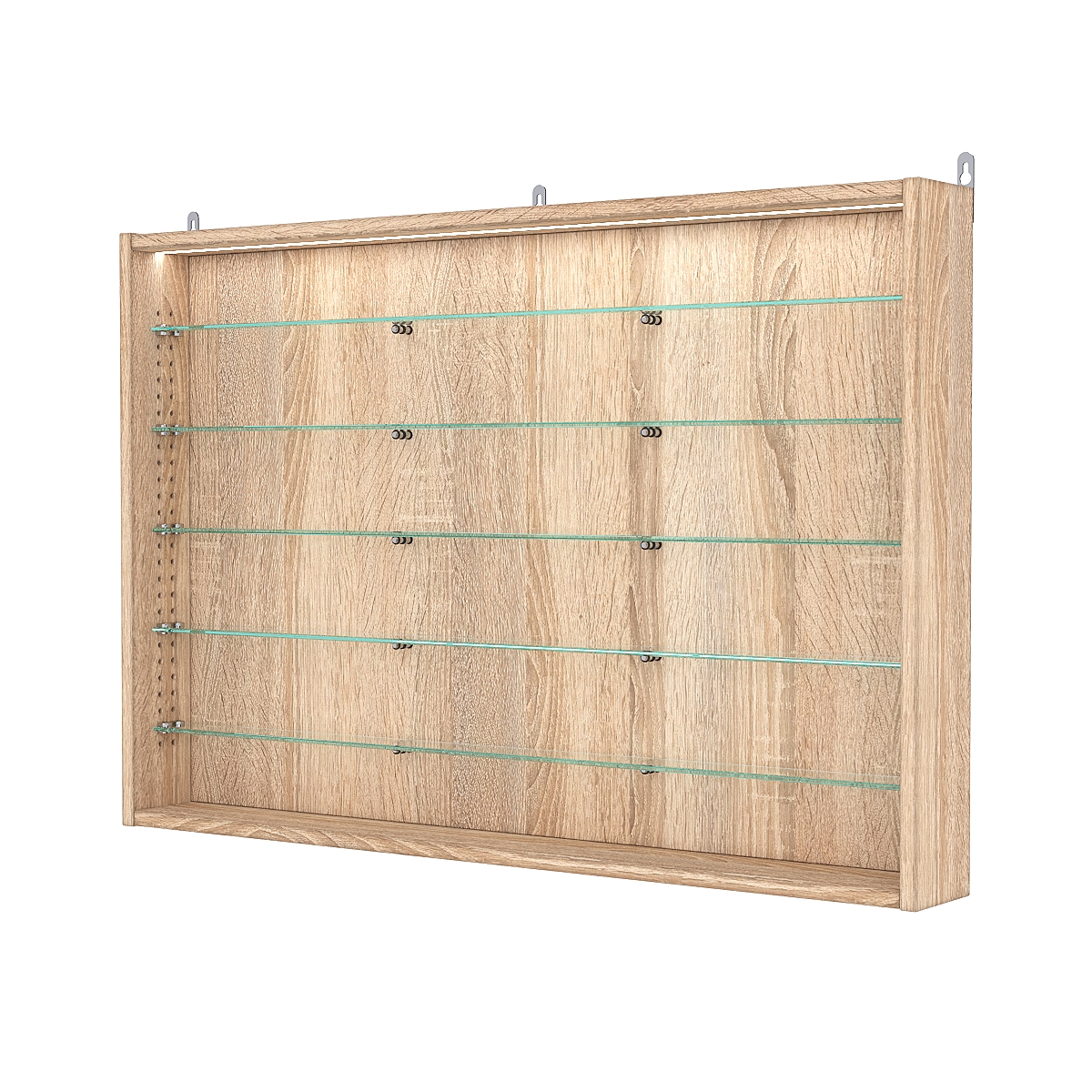 Витрины настенные представляют собой отличный вариант качественных, а главное лёгких конструкций. Собираются в течение 30 минут, монтируются на любую вертикальную поверхность. Специальных навыков при сборке не требуется. Отлично подходят для демонстрации мелких товаров, таких как: бижутерия, брелоки, модели машинок, статуэтки и прочая сувенирная продукция. Есть функция регулировки полок.
