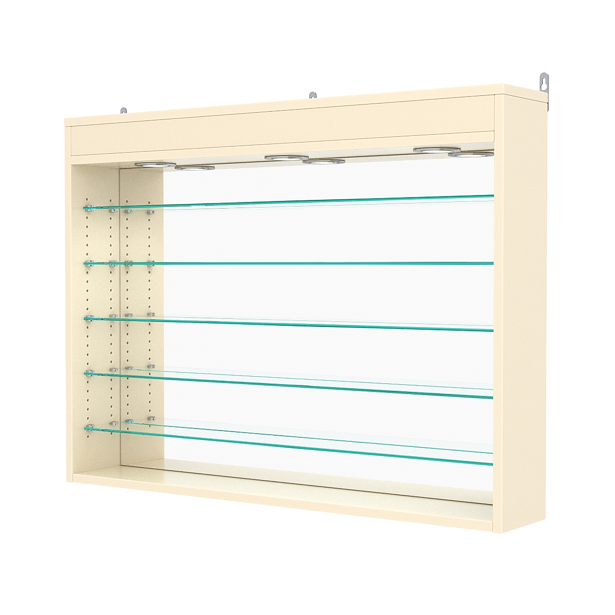 Кол-во полок из стекла 6мм: 5шт, расстояние между которыми 89мм, глубина полок 97мм;