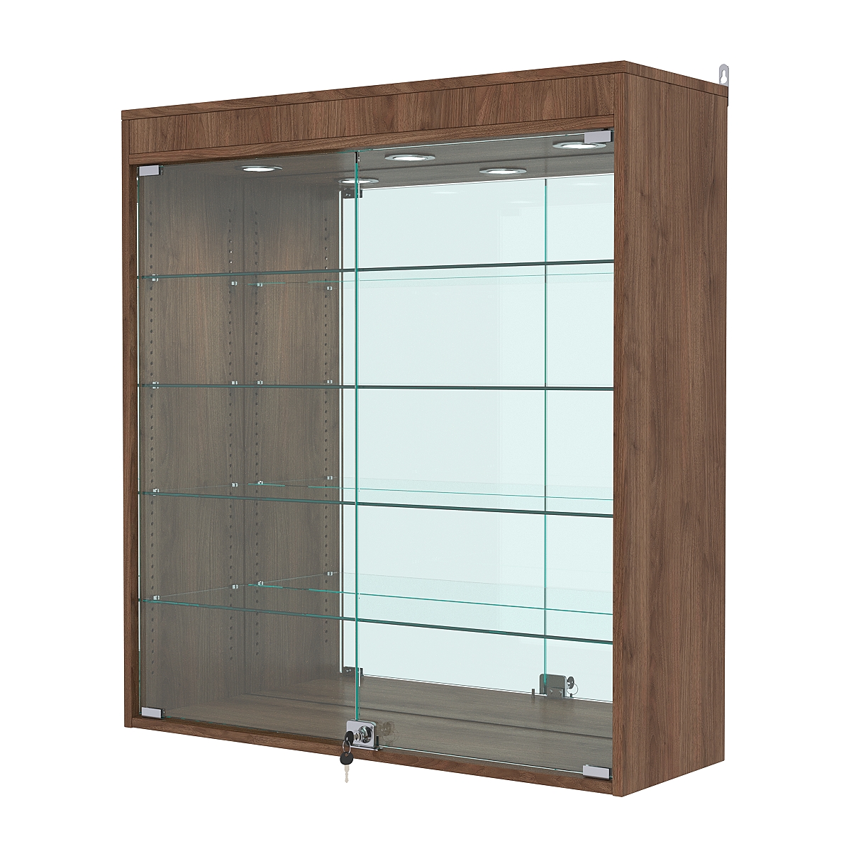 Витрины настенные представляют собой отличный вариант качественных, а главное лёгких конструкций. Собираются в течение 30 минут, монтируются на любую вертикальную поверхность. Специальных навыков при сборке не требуется. Отлично подходят для демонстрации мелких товаров, таких как: бижутерия, брелоки, модели машинок, статуэтки и прочая сувенирная продукция. Есть функция регулировки полок.