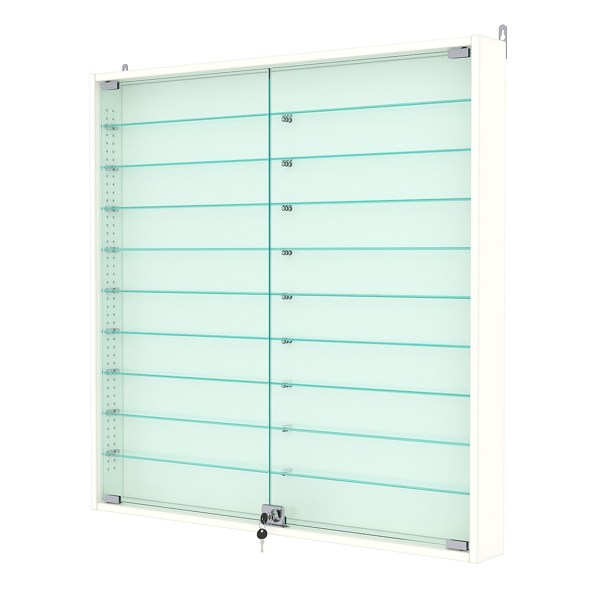 Витрины настенные представляют собой отличный вариант качественных, а главное лёгких конструкций. Собираются в течение 30 минут, монтируются на любую вертикальную поверхность. Специальных навыков при сборке не требуется. Отлично подходят для демонстрации мелких товаров, таких как: бижутерия, брелоки, модели машинок, статуэтки и прочая сувенирная продукция. Есть функция регулировки полок.