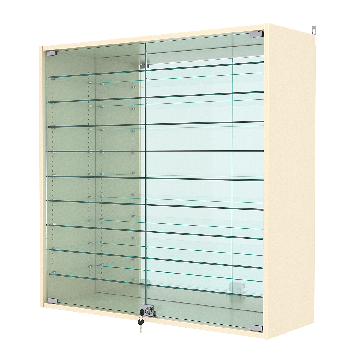 Витрины настенные представляют собой отличный вариант качественных, а главное лёгких конструкций. Собираются в течение 30 минут, монтируются на любую вертикальную поверхность. Специальных навыков при сборке не требуется. Отлично подходят для демонстрации мелких товаров, таких как: бижутерия, брелоки, модели машинок, статуэтки и прочая сувенирная продукция. Есть функция регулировки полок.