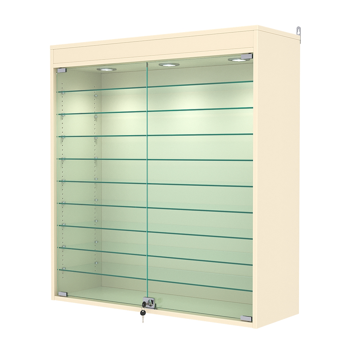 Витрины настенные представляют собой отличный вариант качественных, а главное лёгких конструкций. Собираются в течение 30 минут, монтируются на любую вертикальную поверхность. Специальных навыков при сборке не требуется. Отлично подходят для демонстрации мелких товаров, таких как: бижутерия, брелоки, модели машинок, статуэтки и прочая сувенирная продукция. Есть функция регулировки полок.