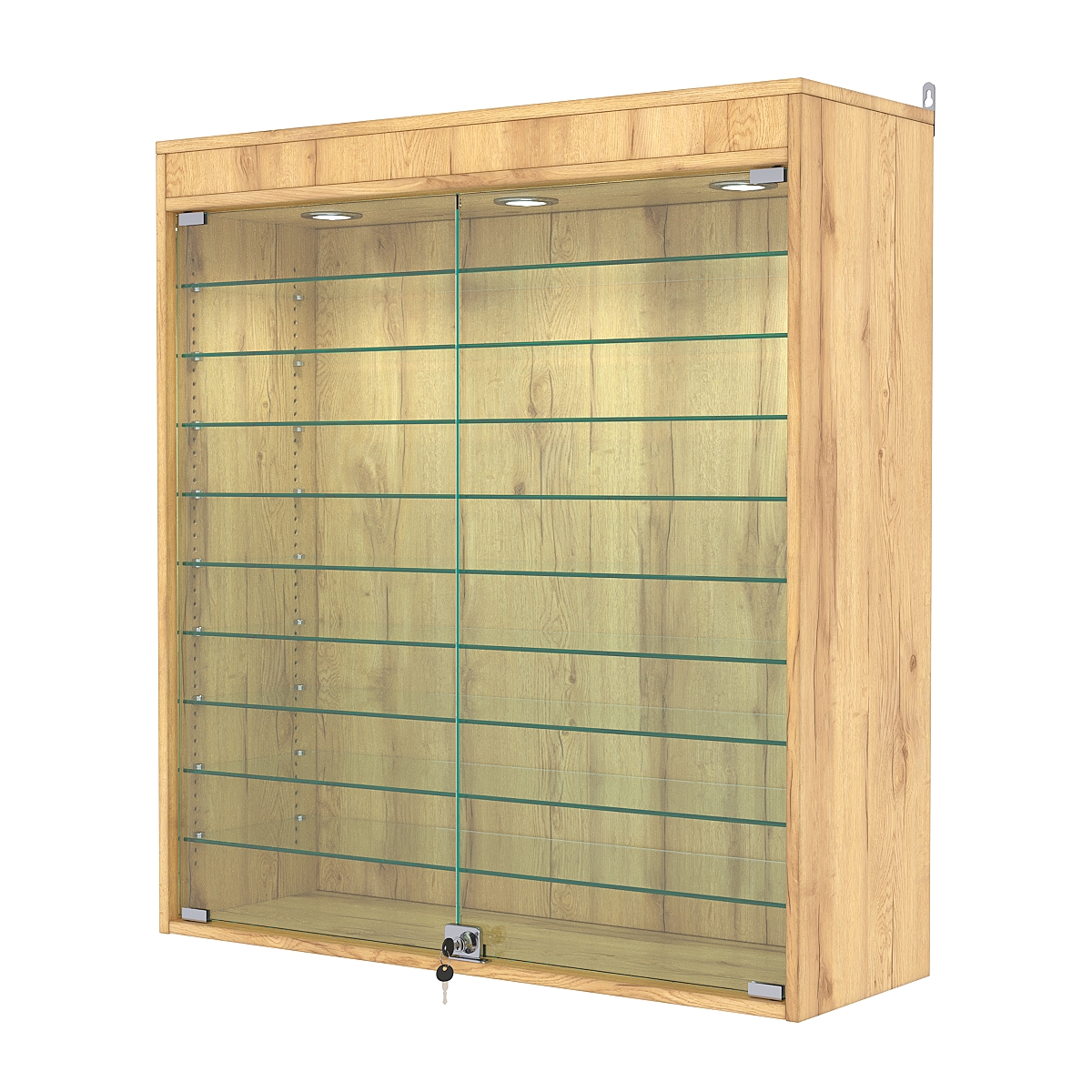 Витрина настенная с регулировочными полками №4-7АГ-РЕГ с подсветкой, Дуб Золотистый