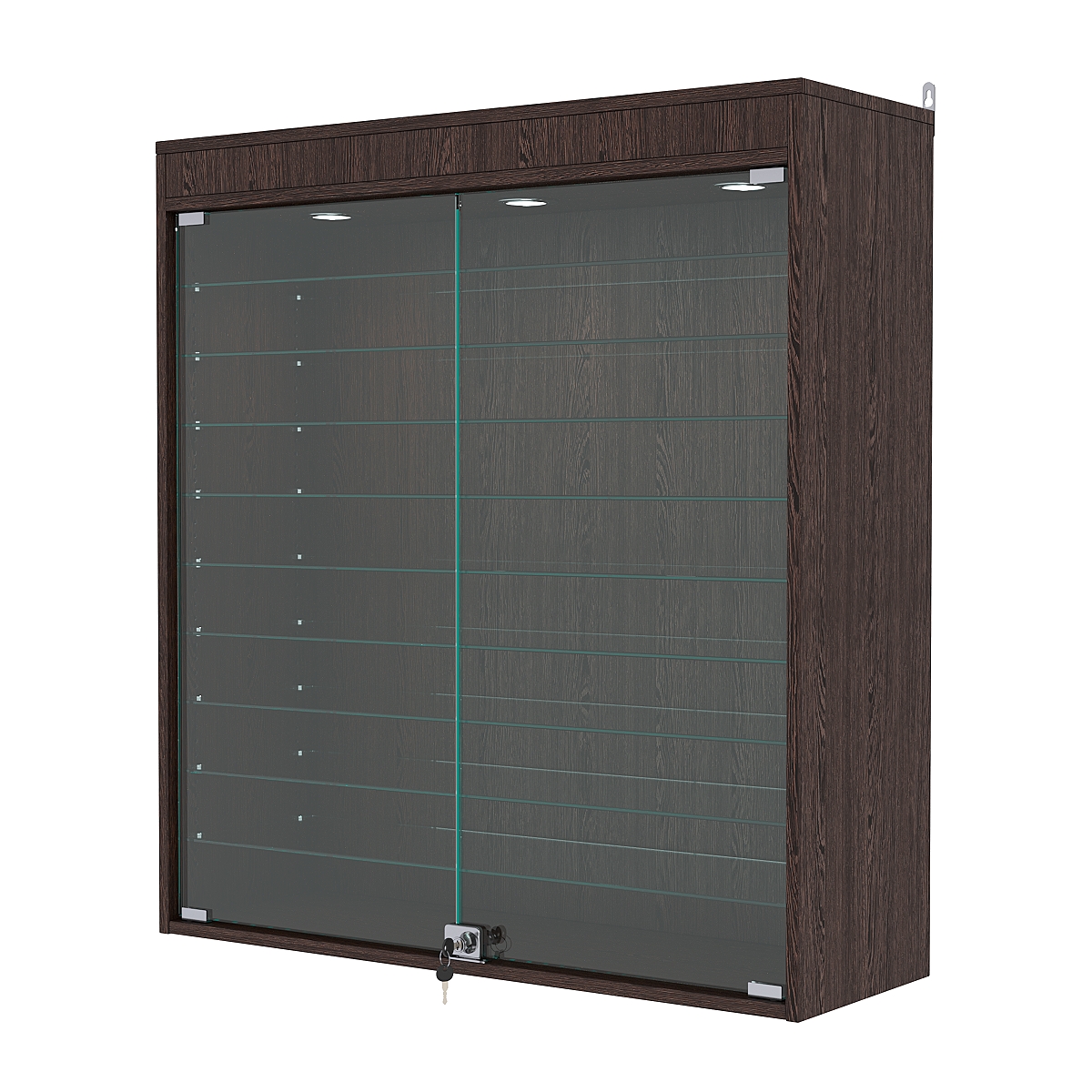 Витрины настенные представляют собой отличный вариант качественных, а главное лёгких конструкций. Собираются в течение 30 минут, монтируются на любую вертикальную поверхность. Специальных навыков при сборке не требуется. Отлично подходят для демонстрации мелких товаров, таких как: бижутерия, брелоки, модели машинок, статуэтки и прочая сувенирная продукция. Есть функция регулировки полок.