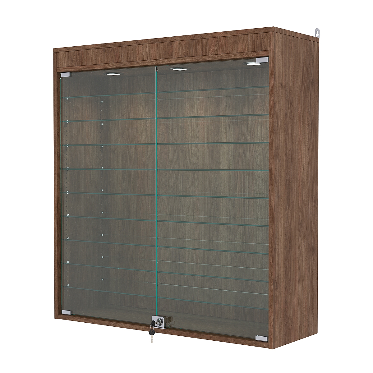 Витрина настенная с регулировочными полками №4-7АГ-РЕГ с подсветкой, Орех