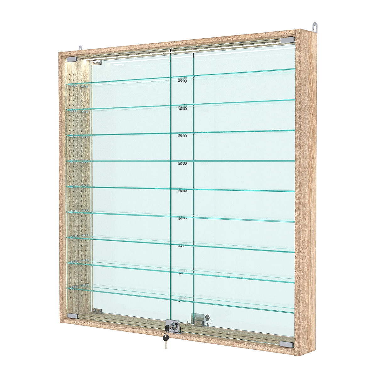 Витрины настенные представляют собой отличный вариант качественных, а главное лёгких конструкций. Собираются в течение 30 минут, монтируются на любую вертикальную поверхность. Специальных навыков при сборке не требуется. Отлично подходят для демонстрации мелких товаров, таких как: бижутерия, брелоки, модели машинок, статуэтки и прочая сувенирная продукция. Есть функция регулировки полок.
