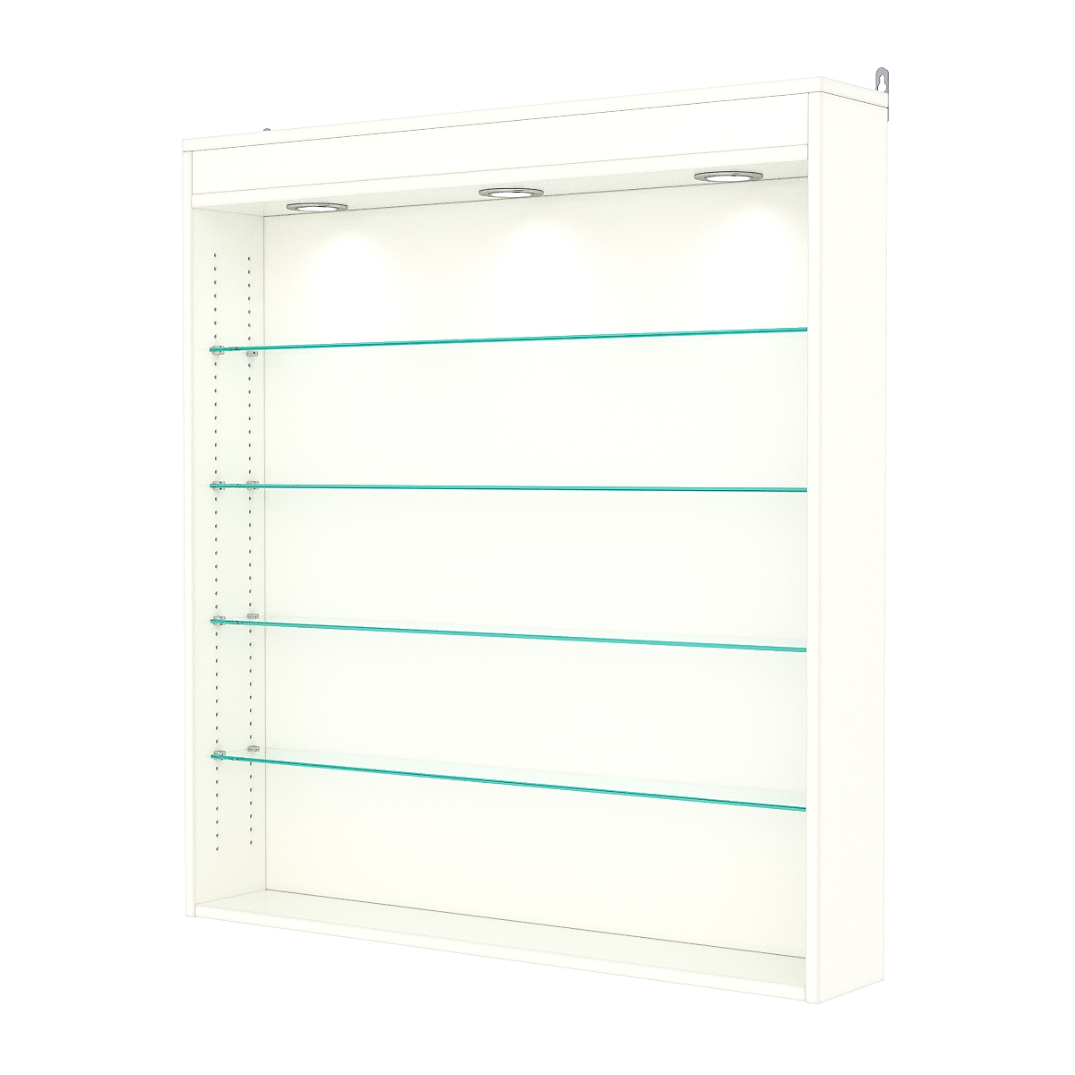 Витрины настенные представляют собой отличный вариант качественных, а главное лёгких конструкций. Собираются в течение 30 минут, монтируются на любую вертикальную поверхность. Специальных навыков при сборке не требуется. Отлично подходят для демонстрации мелких товаров, таких как: бижутерия, брелоки, модели машинок, статуэтки и прочая сувенирная продукция. Есть функция регулировки полок.