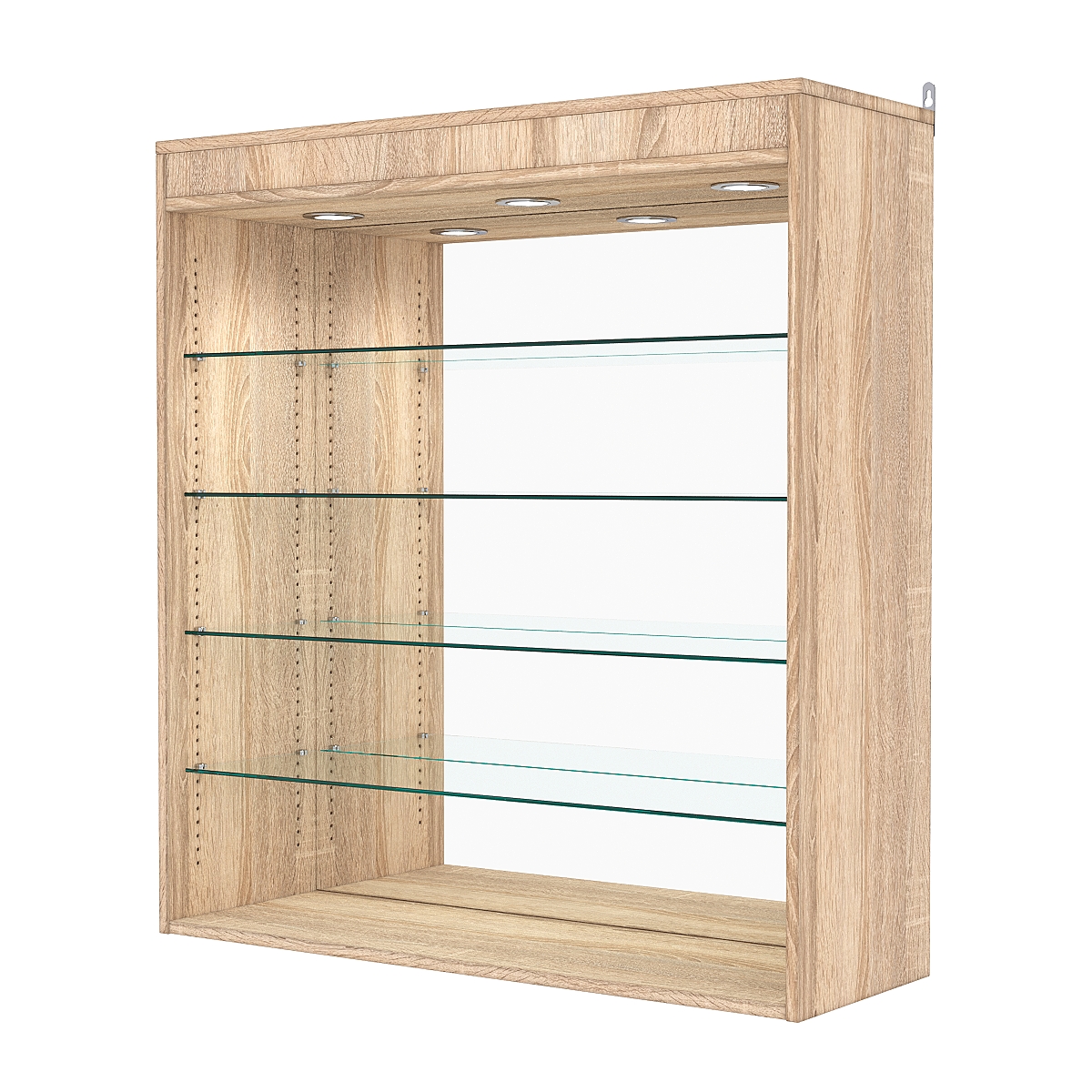 Витрина настенная с регулировочными полками №4-4ГГ-РЕГ с зеркалом и с подсветкой, Дуб Сонома