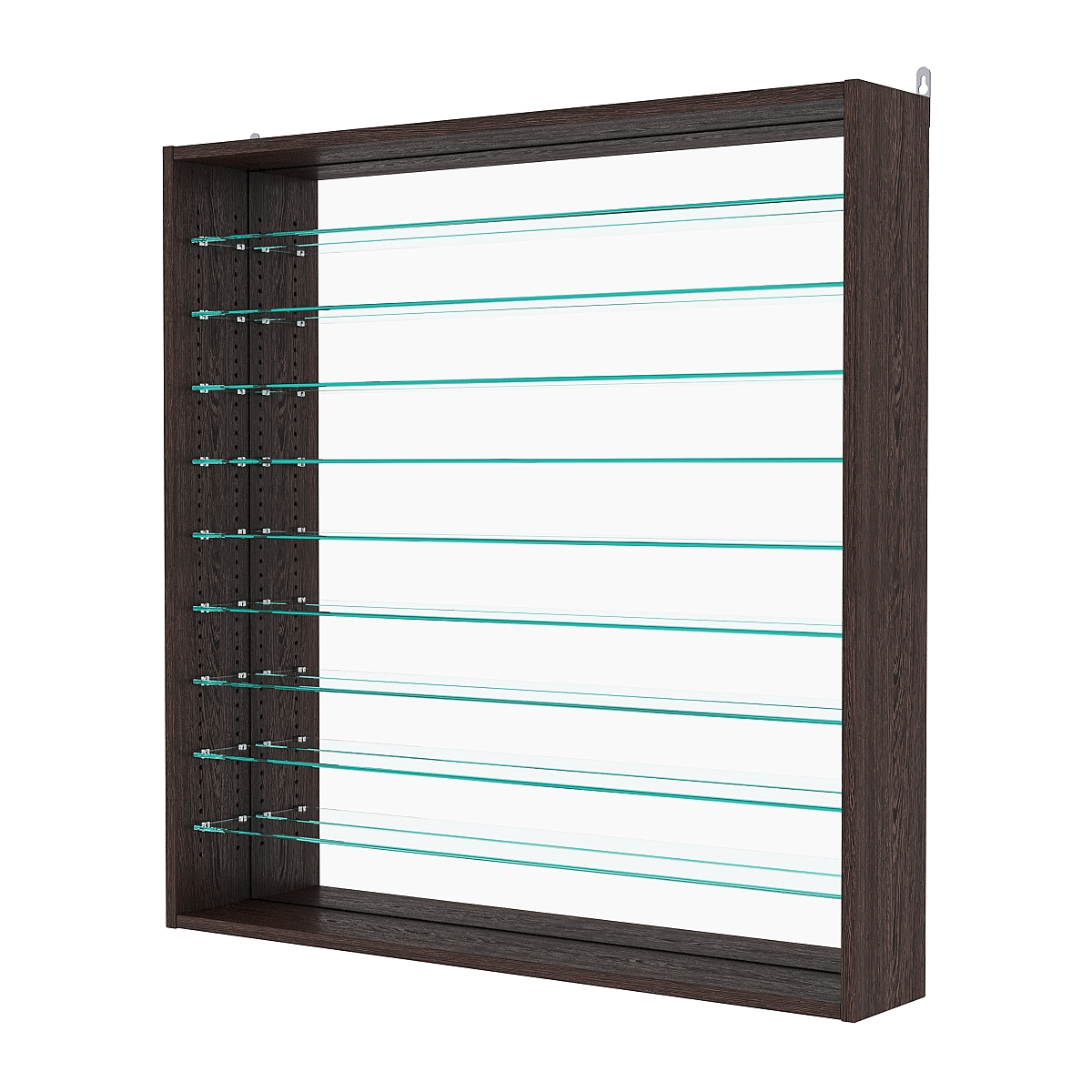 Кол-во полок из стекла 6мм: 9шт, расстояние между которыми 81мм, глубина полок 97мм;