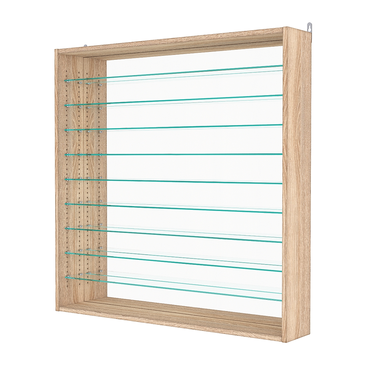 Кол-во полок из стекла 6мм: 9шт, расстояние между которыми 81мм, глубина полок 97мм;
