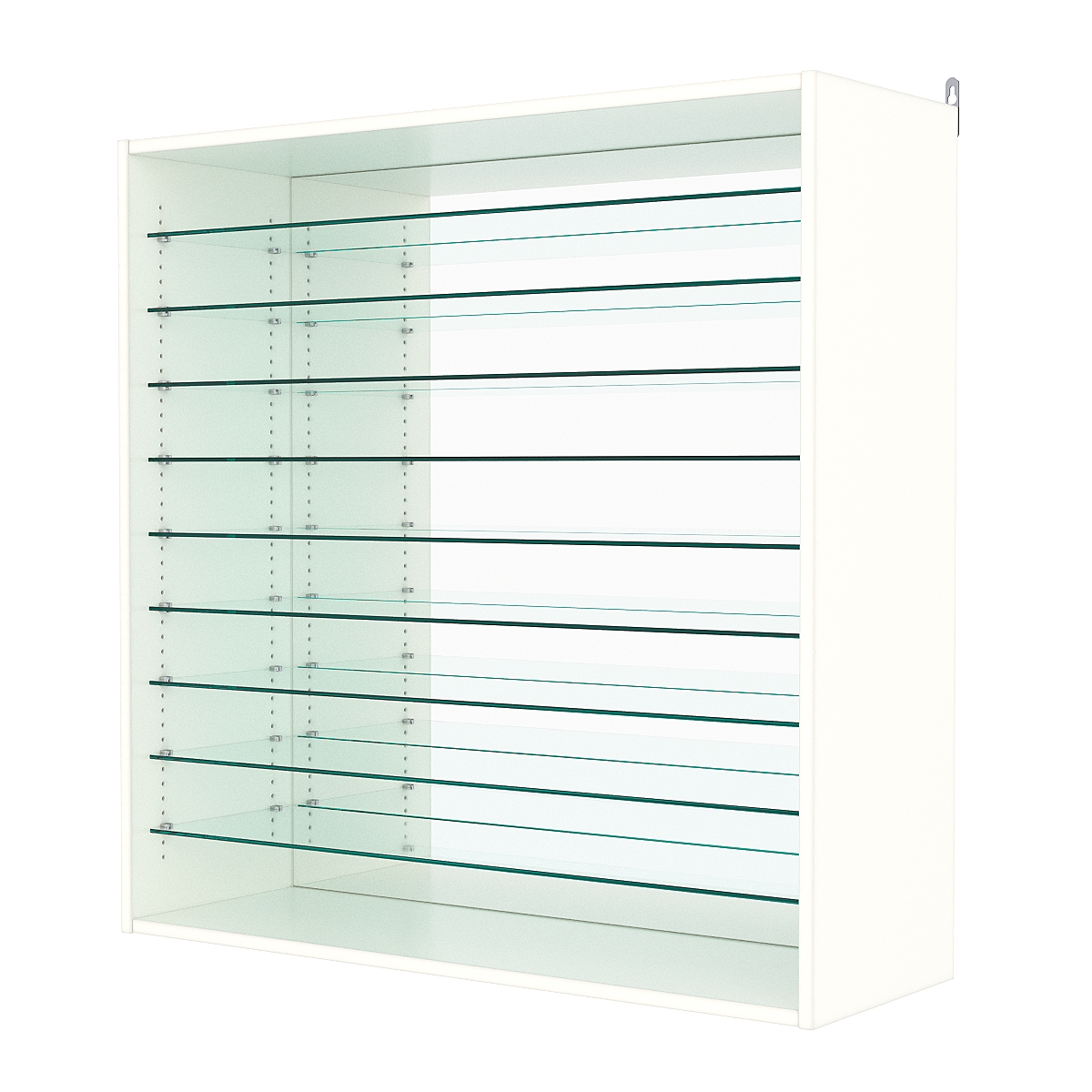 Витрины настенные представляют собой отличный вариант качественных, а главное лёгких конструкций. Собираются в течение 30 минут, монтируются на любую вертикальную поверхность. Специальных навыков при сборке не требуется. Отлично подходят для демонстрации мелких товаров, таких как: бижутерия, брелоки, модели машинок, статуэтки и прочая сувенирная продукция. Есть функция регулировки полок.