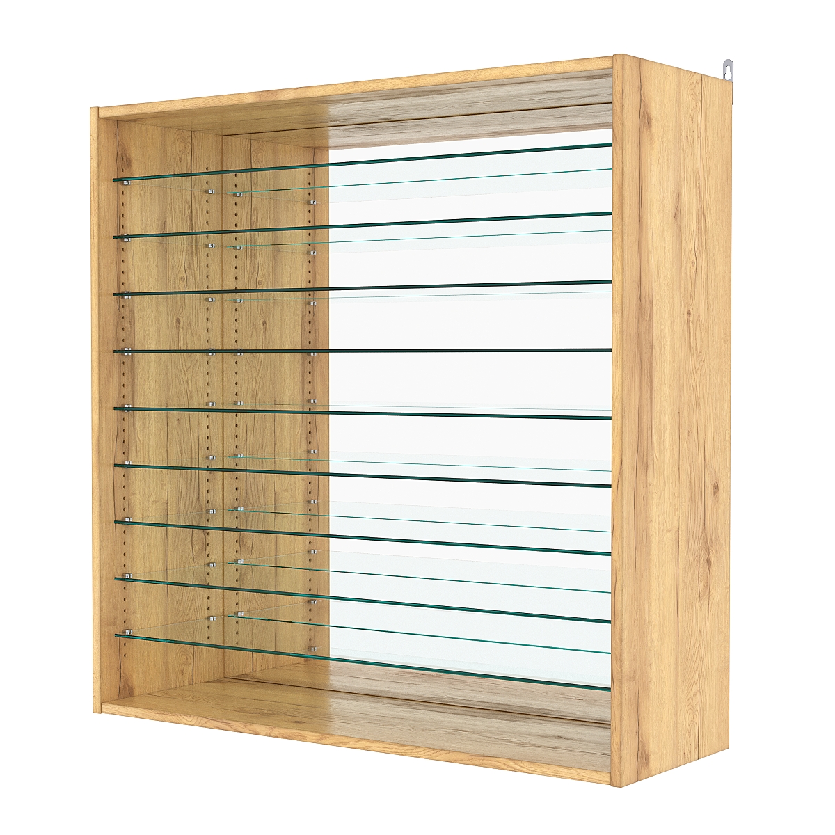 Витрины настенные представляют собой отличный вариант качественных, а главное лёгких конструкций. Собираются в течение 30 минут, монтируются на любую вертикальную поверхность. Специальных навыков при сборке не требуется. Отлично подходят для демонстрации мелких товаров, таких как: бижутерия, брелоки, модели машинок, статуэтки и прочая сувенирная продукция. Есть функция регулировки полок.