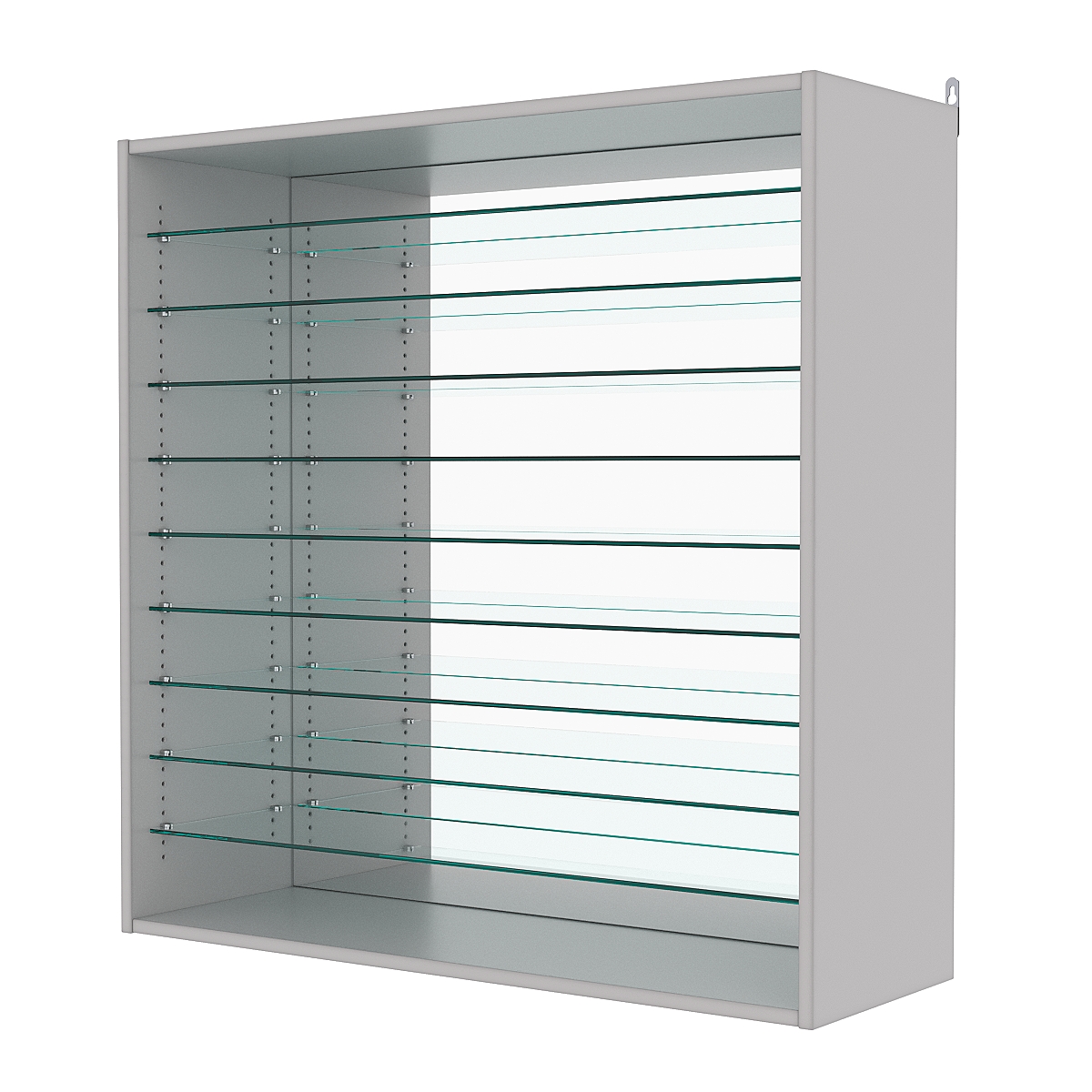 Кол-во полок из стекла 6мм: 9шт, расстояние между которыми 81мм, глубина пполок 254мм;