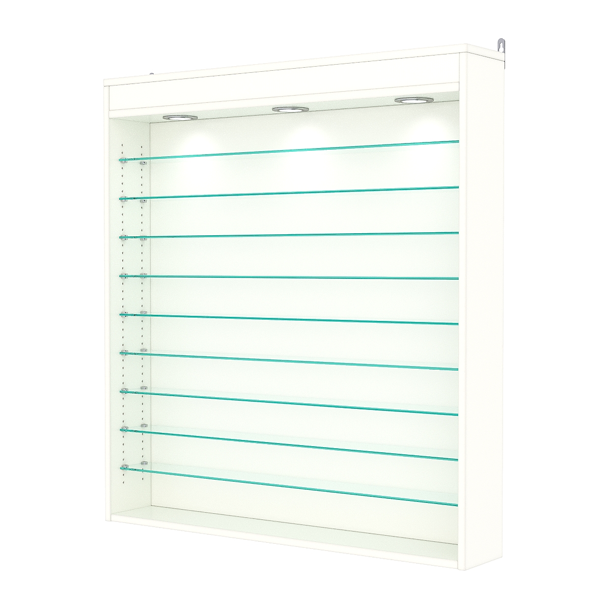 Витрины настенные представляют собой отличный вариант качественных, а главное лёгких конструкций. Собираются в течение 30 минут, монтируются на любую вертикальную поверхность. Специальных навыков при сборке не требуется. Отлично подходят для демонстрации мелких товаров, таких как: бижутерия, брелоки, модели машинок, статуэтки и прочая сувенирная продукция. Есть функция регулировки полок.
